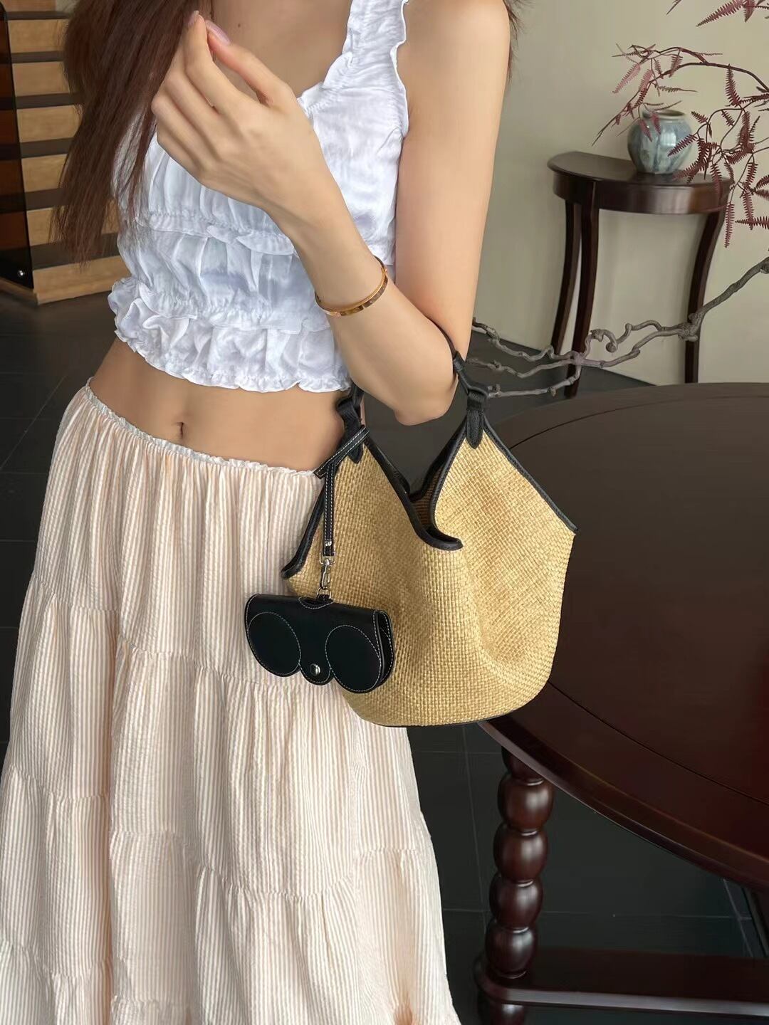 【予約販売】韓国デザイン レザーパイピング カゴバッグ 巾着 バケットBAG