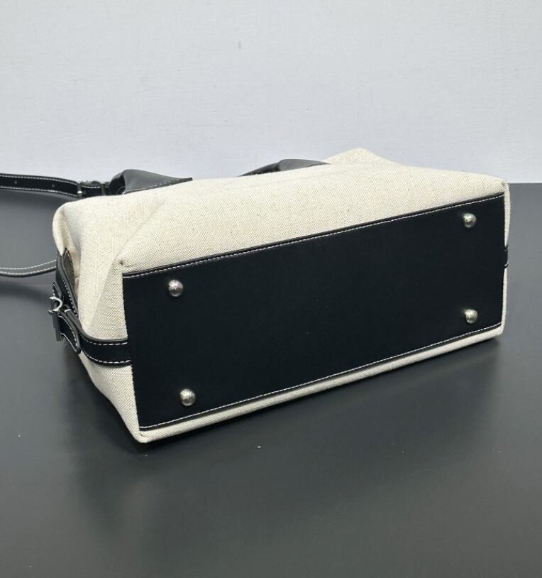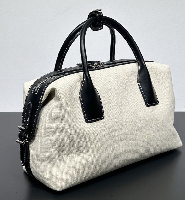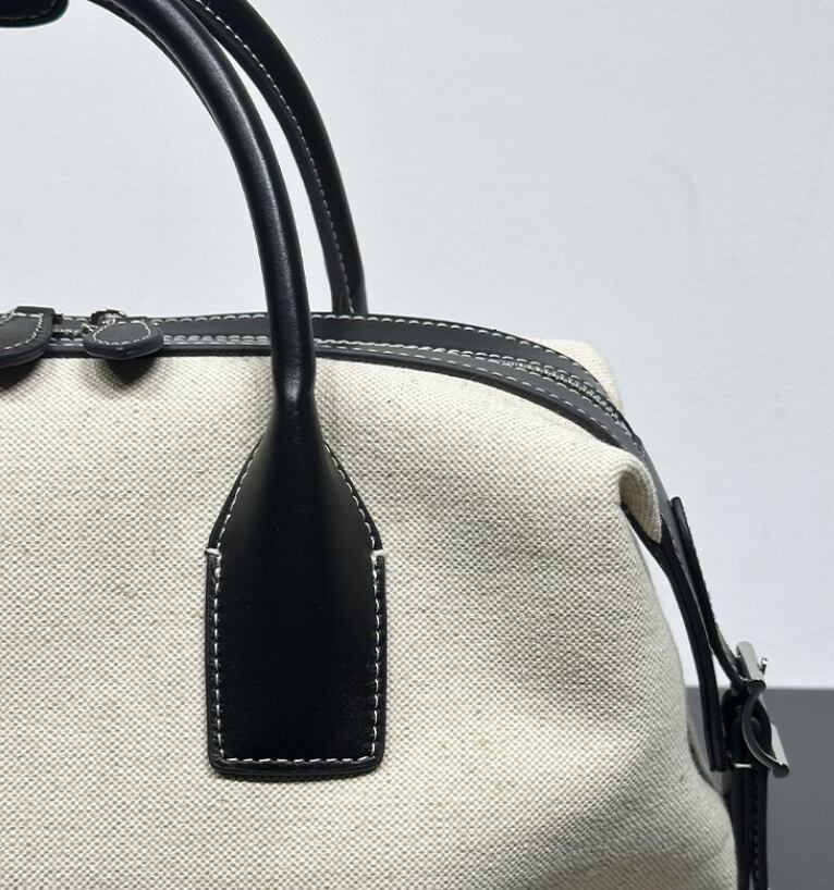 【予約販売】韓国デザイン キャンバスハンドバッグ ボーリングBAG レザー