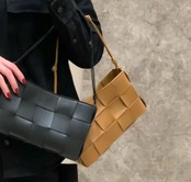 【予約販売】韓国デザイン 編み込み レザーミニスクエアハンドバッグ ショルダー BAG