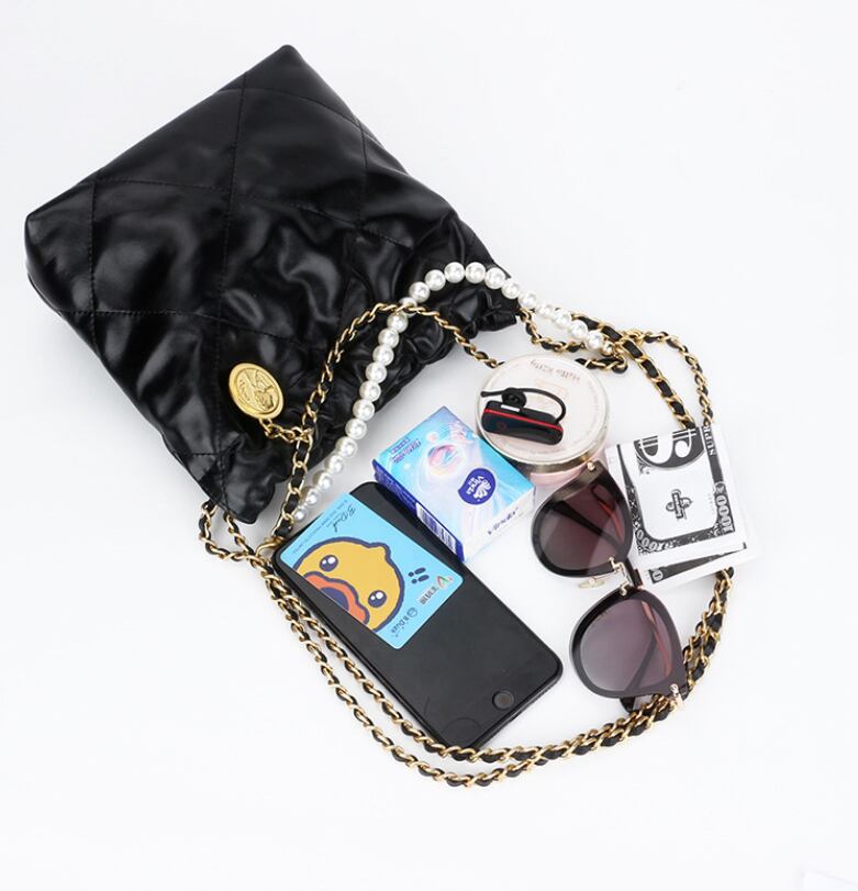【予約販売】韓国デザイン レザーキルティングチェーンバッグ パール ハンドバッグ BAG