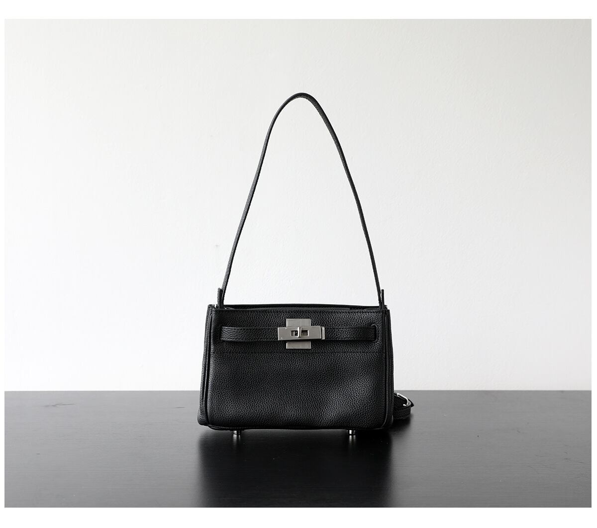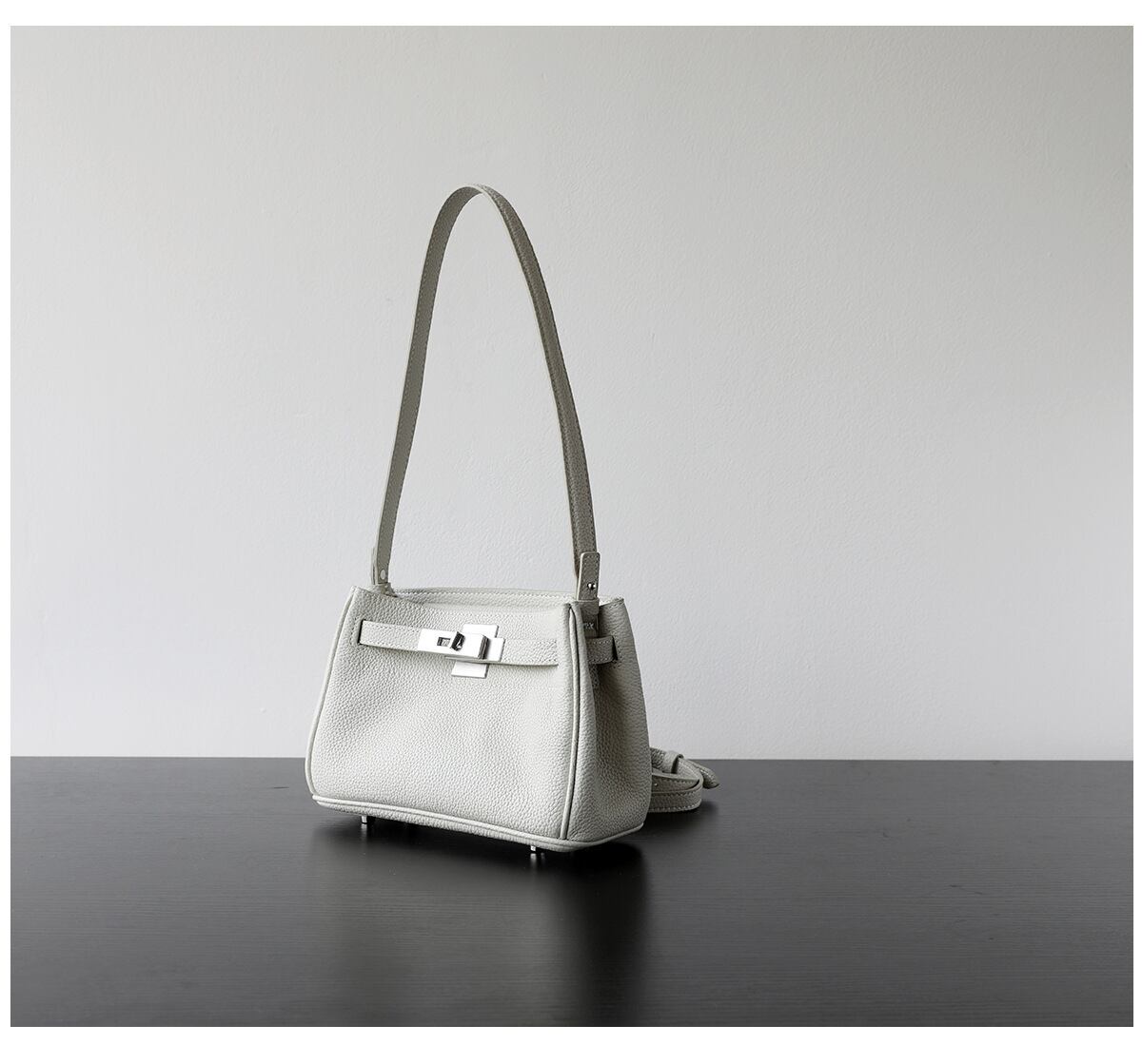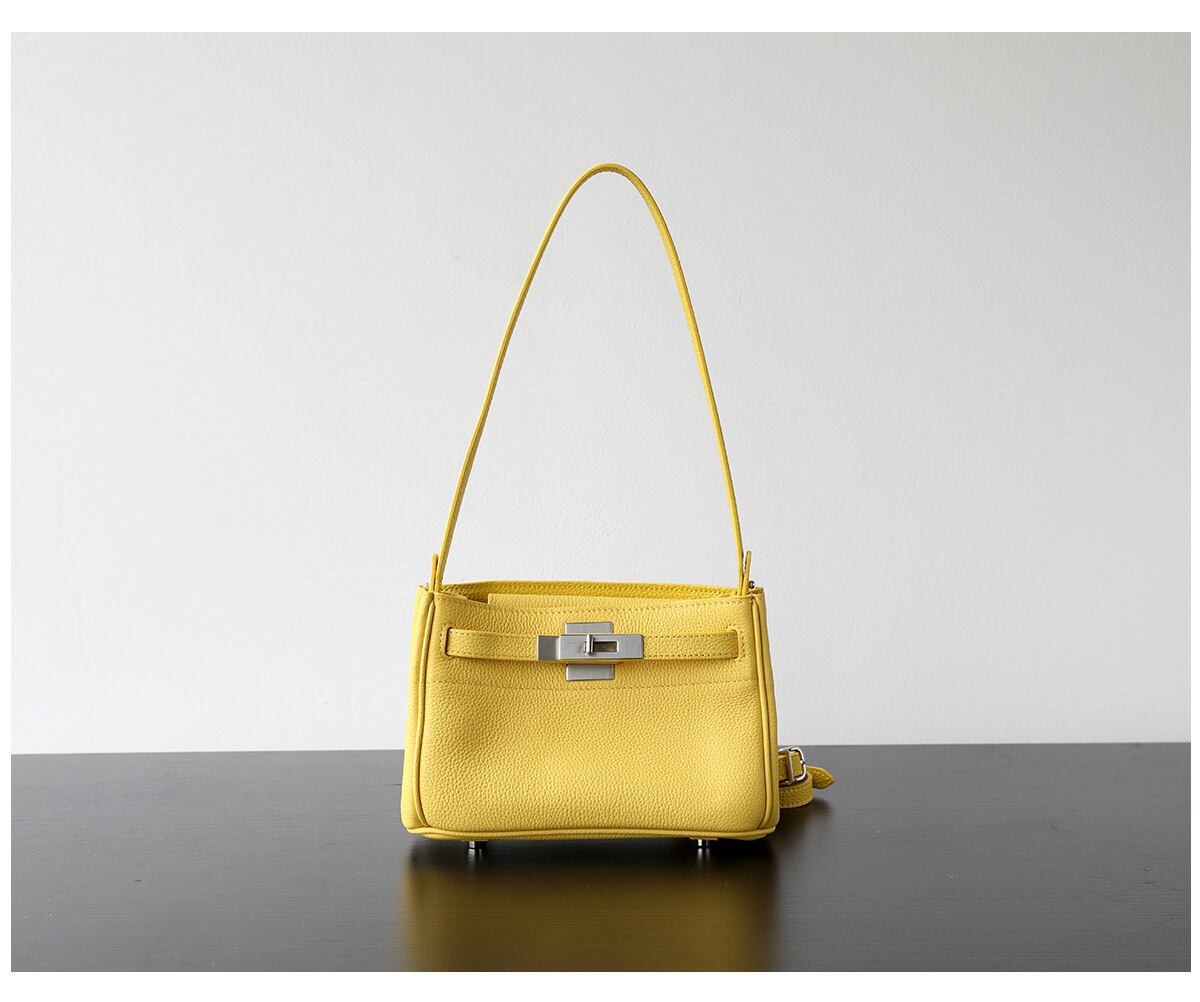【予約販売】韓国デザイン レザーハンドバッグ 巾着 牛革 ロック付ショルダーBAG