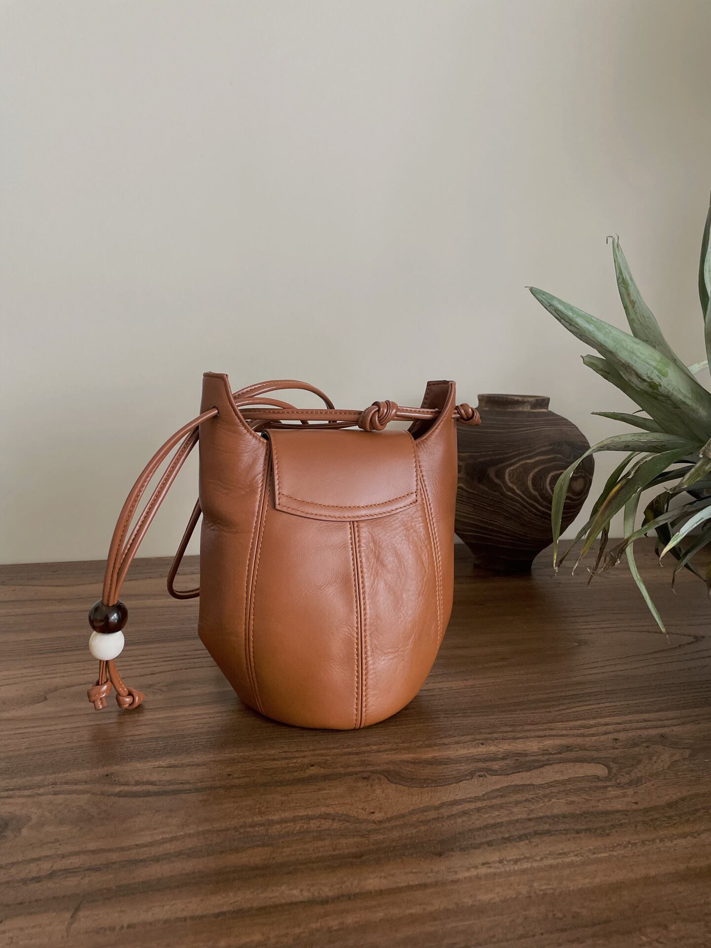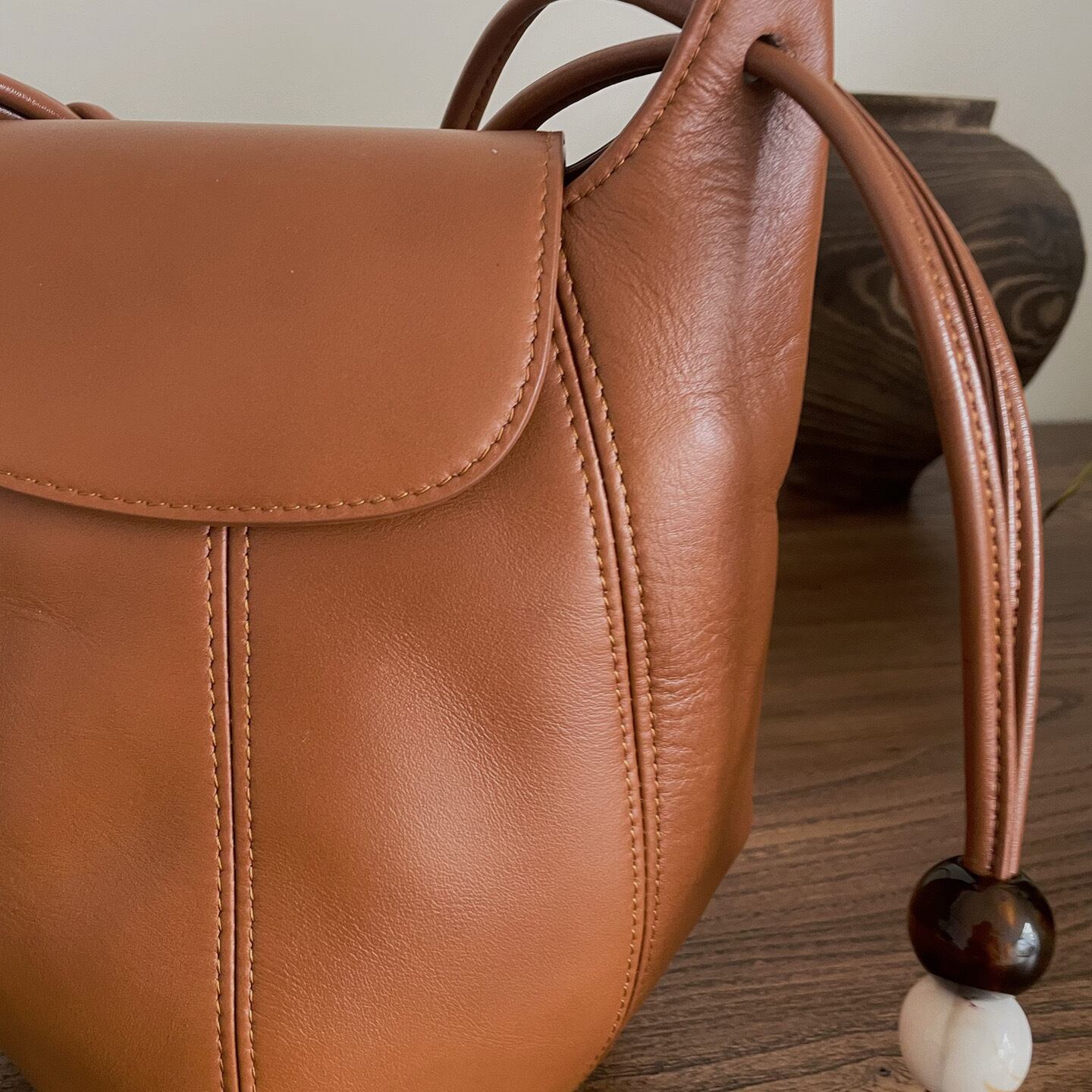 【予約販売】韓国デザイン 本革 レザーショルダーバッグ 巾着 ポーチ BAG