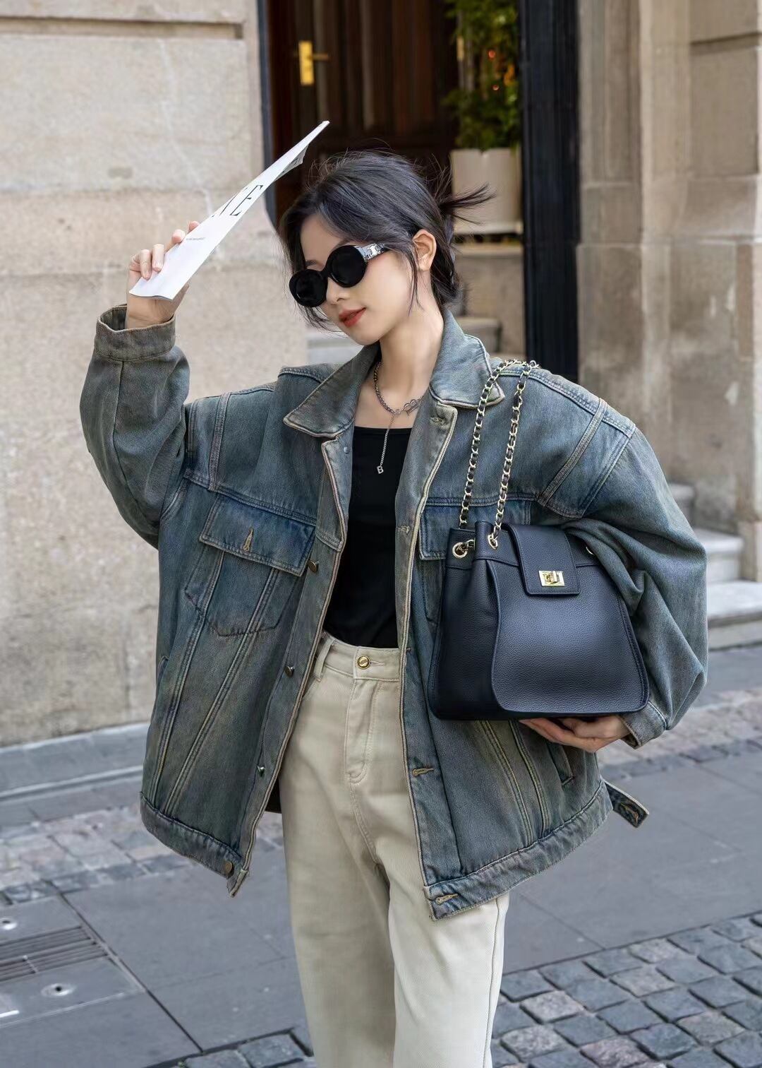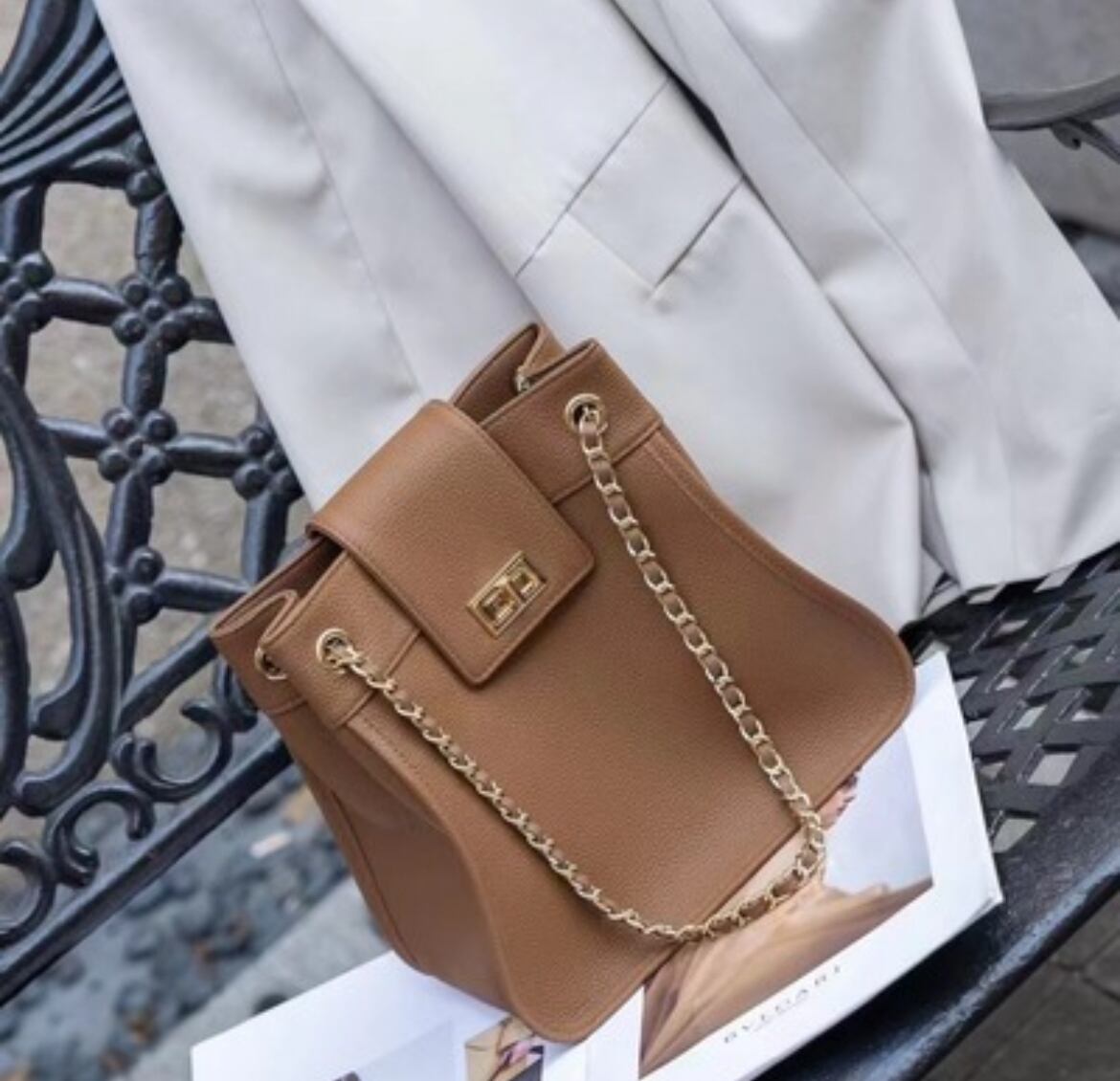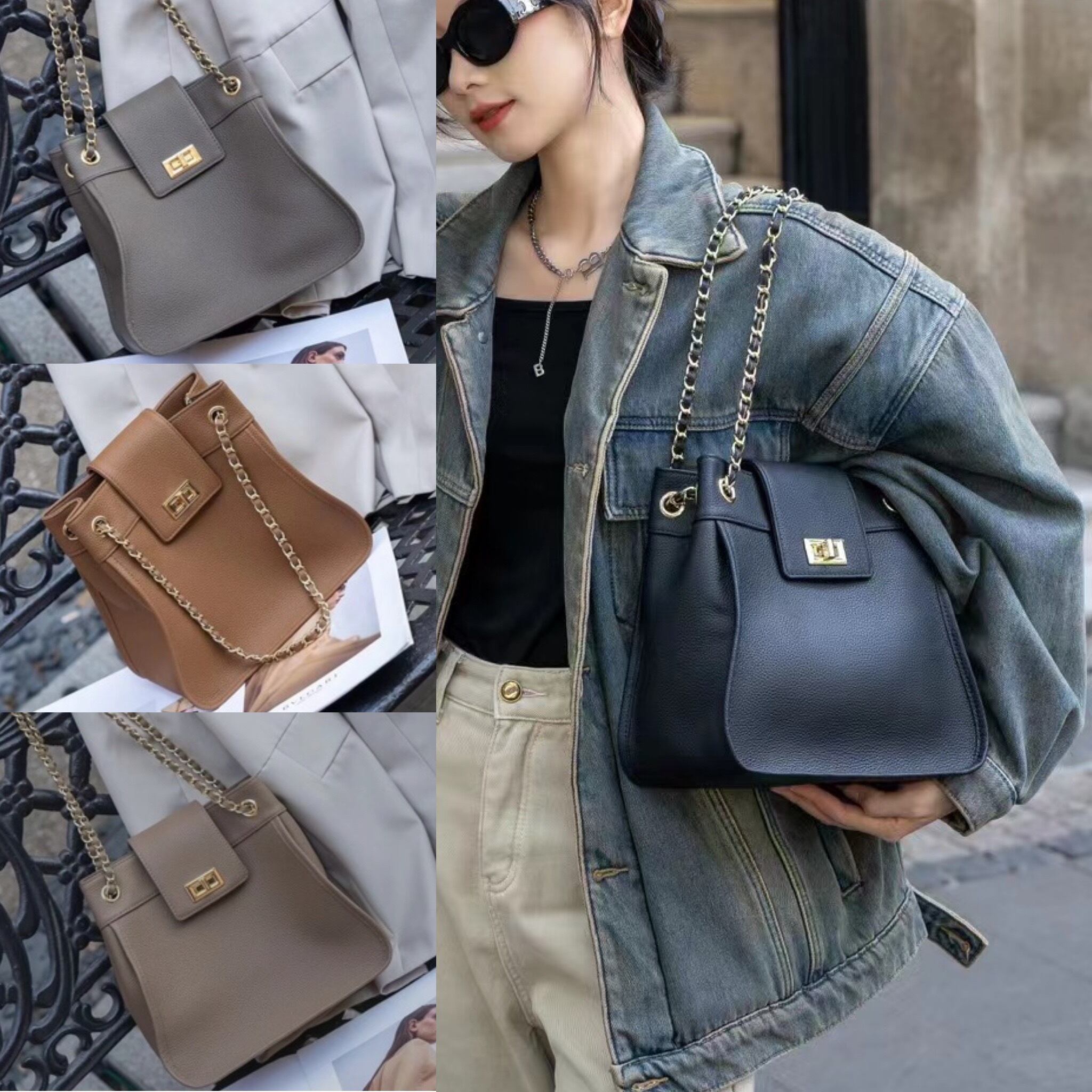 【予約販売】韓国デザイン 本革 レザーチェーンショルダーバッグ バケツBAG