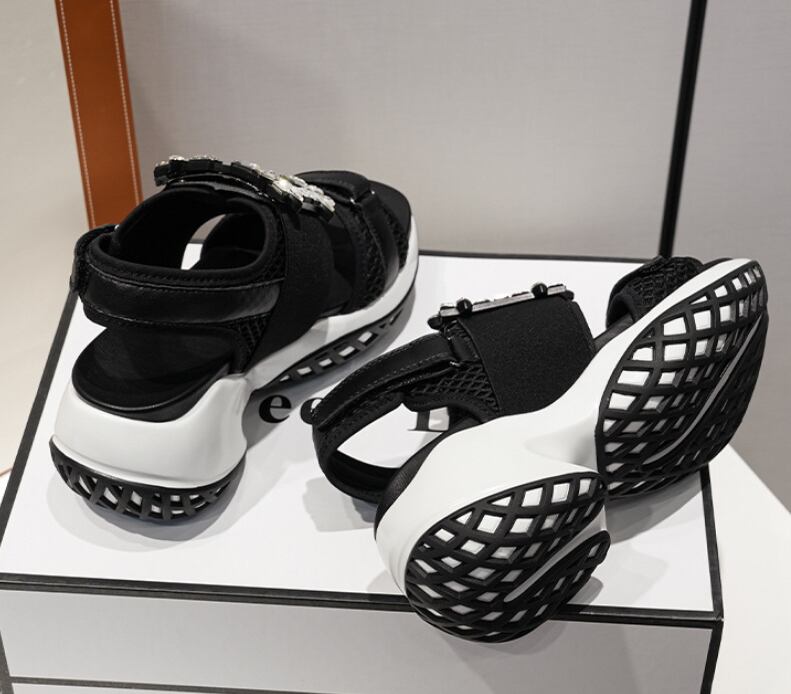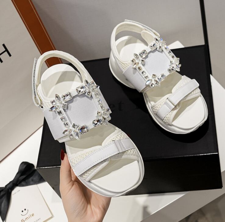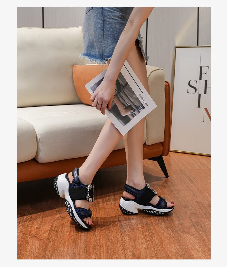 【予約販売】韓国デザイン ビジュー スポーツサンダル キラキラ 厚底 ヒール 5cm