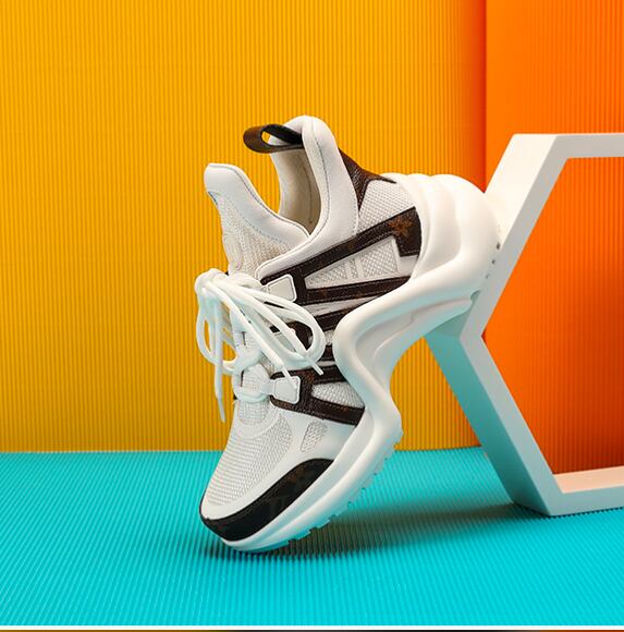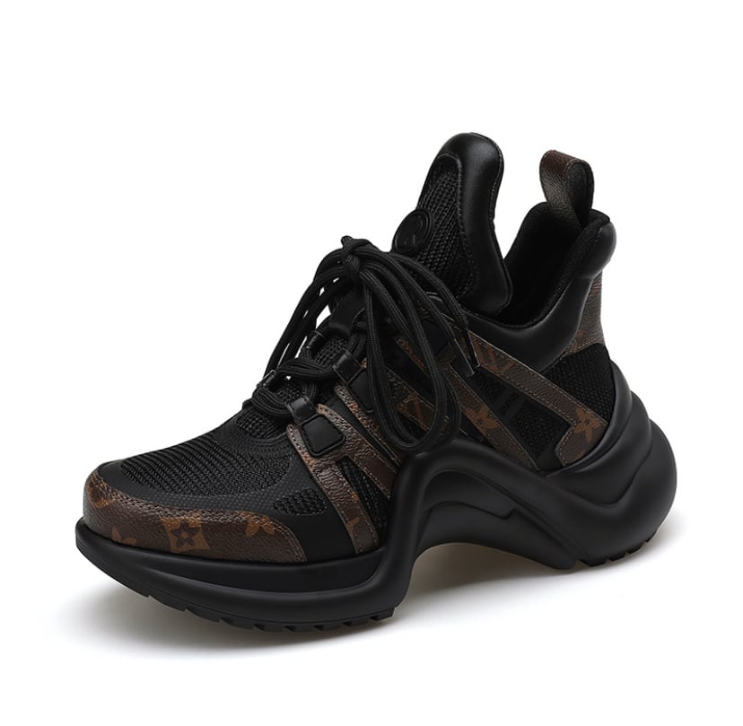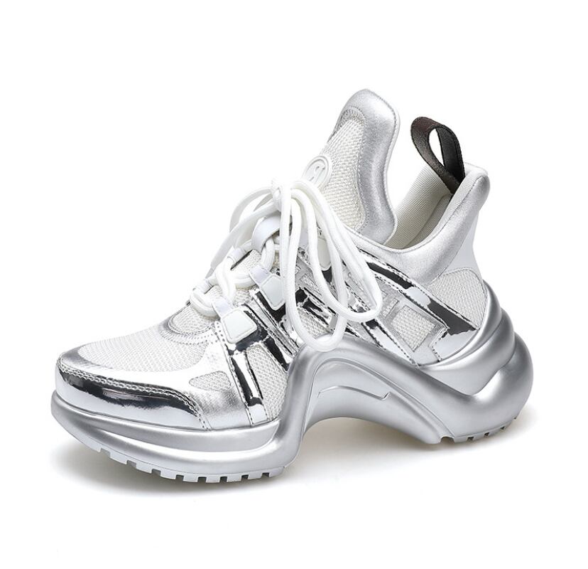 【予約販売】韓国デザイン レザーミックススポーティースニーカー 厚底