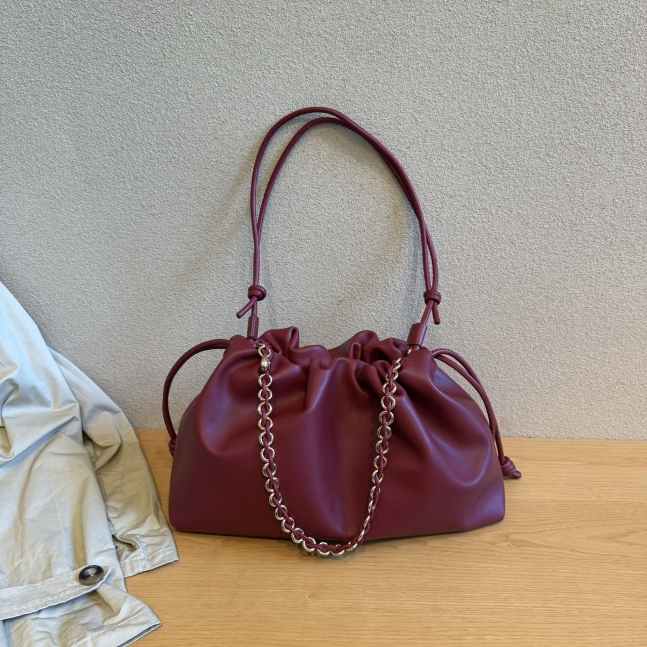 【予約販売】韓国デザイン 本革 レザーボストンバッグ 巾着 ショルダーBAG