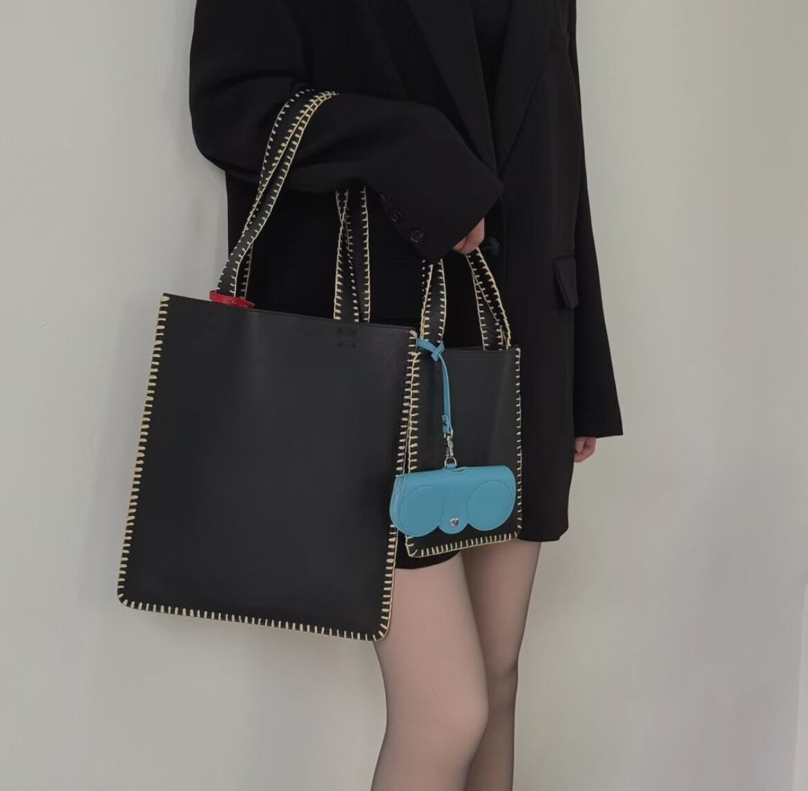 【予約販売】Mサイズ デザイン 本革 リアルレザー ステッチトートバッグ BAG