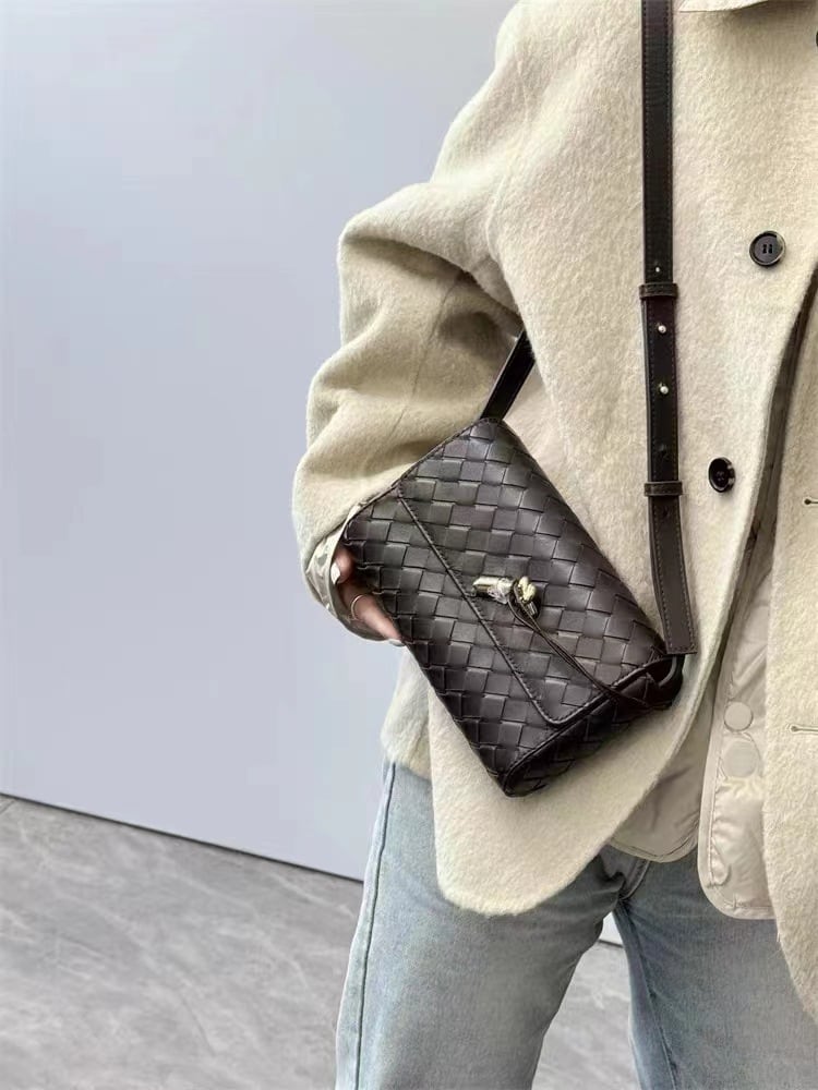 【予約販売】韓国デザイン レザーミニショルダーバッグ 編み込み BAG 本革