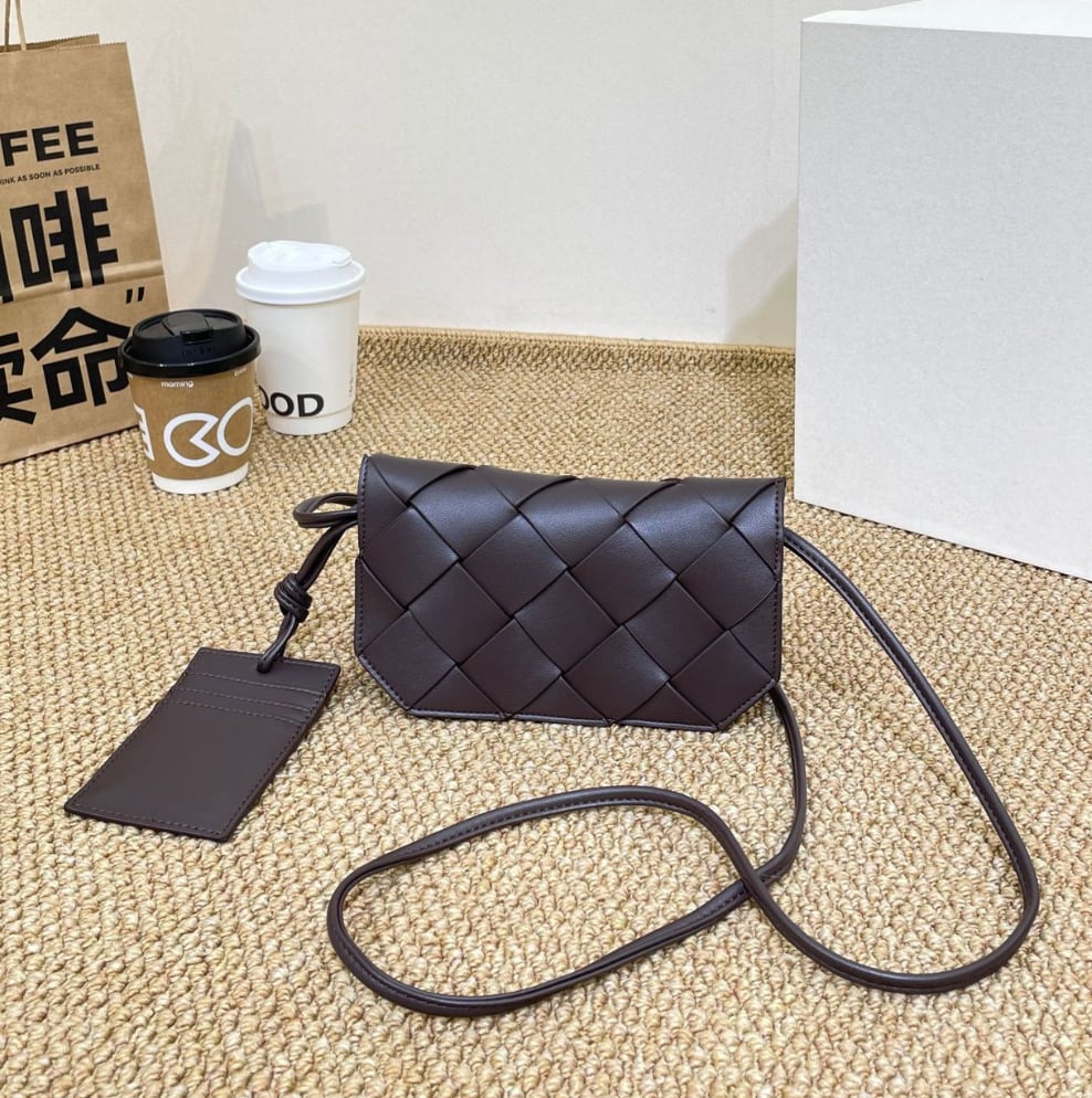 【予約販売】韓国デザイン 牛革 レザー編み込みミニ ショルダーバッグ BAG ユニセックス