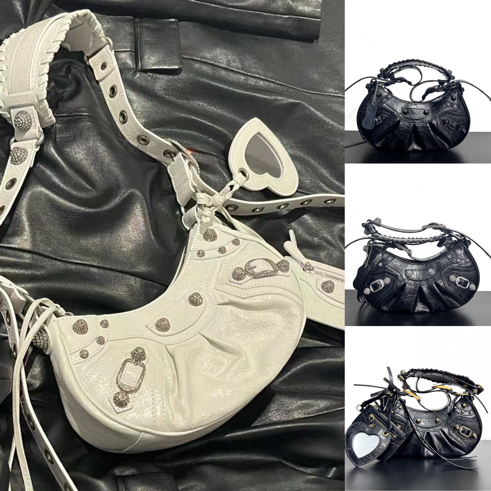 【予約販売】ムーンレザーショルダーバッグ ハンドバッグ ハートミラー 本革BAG