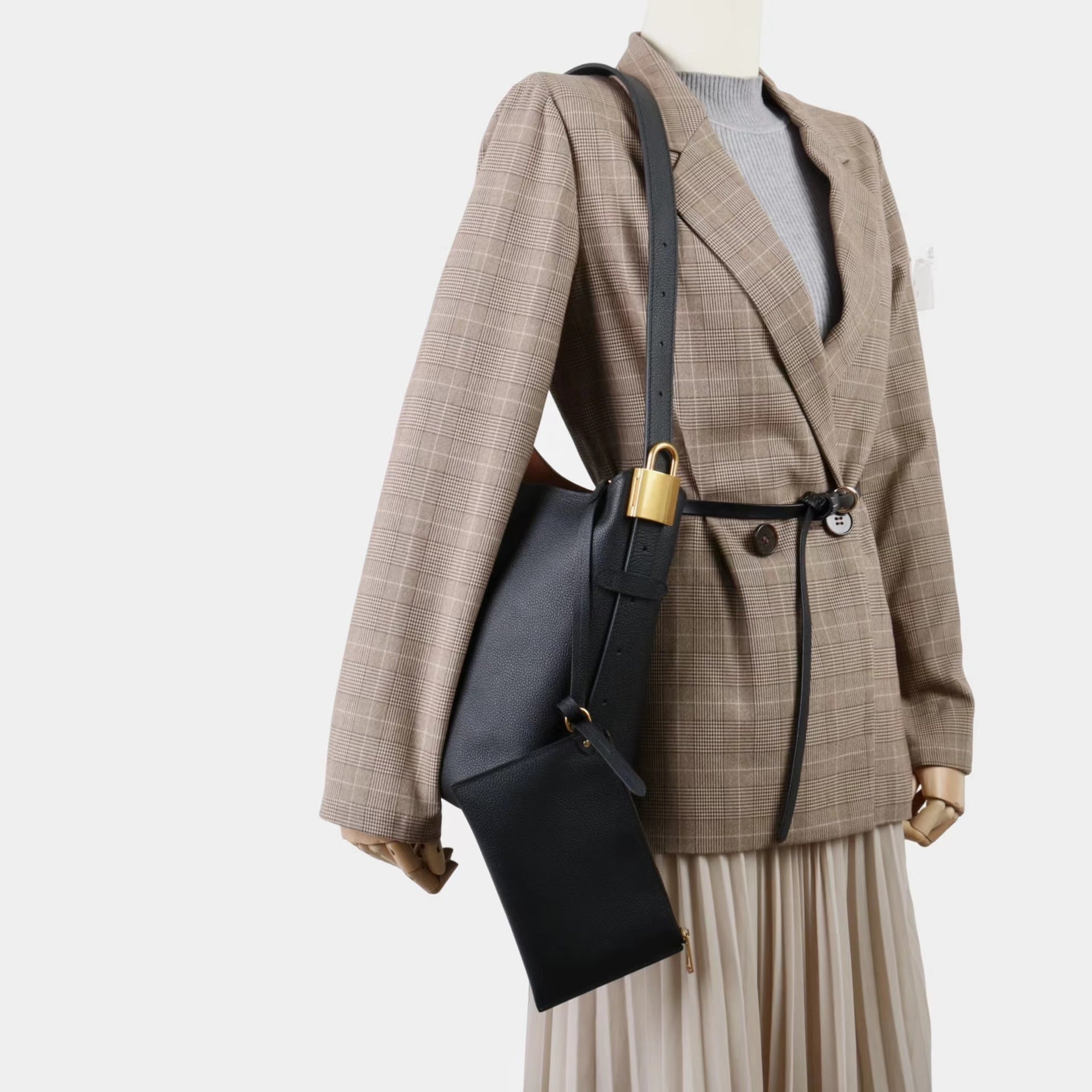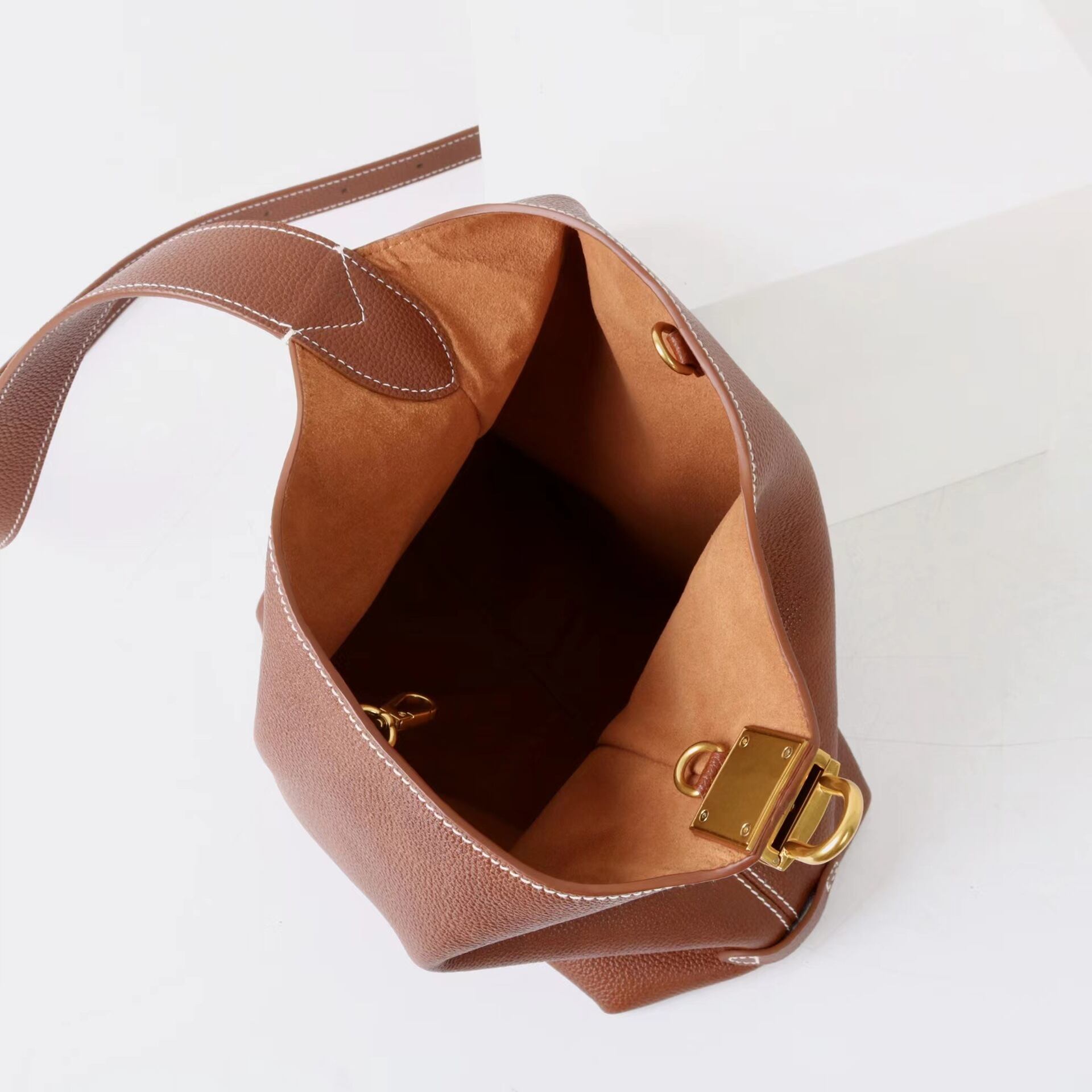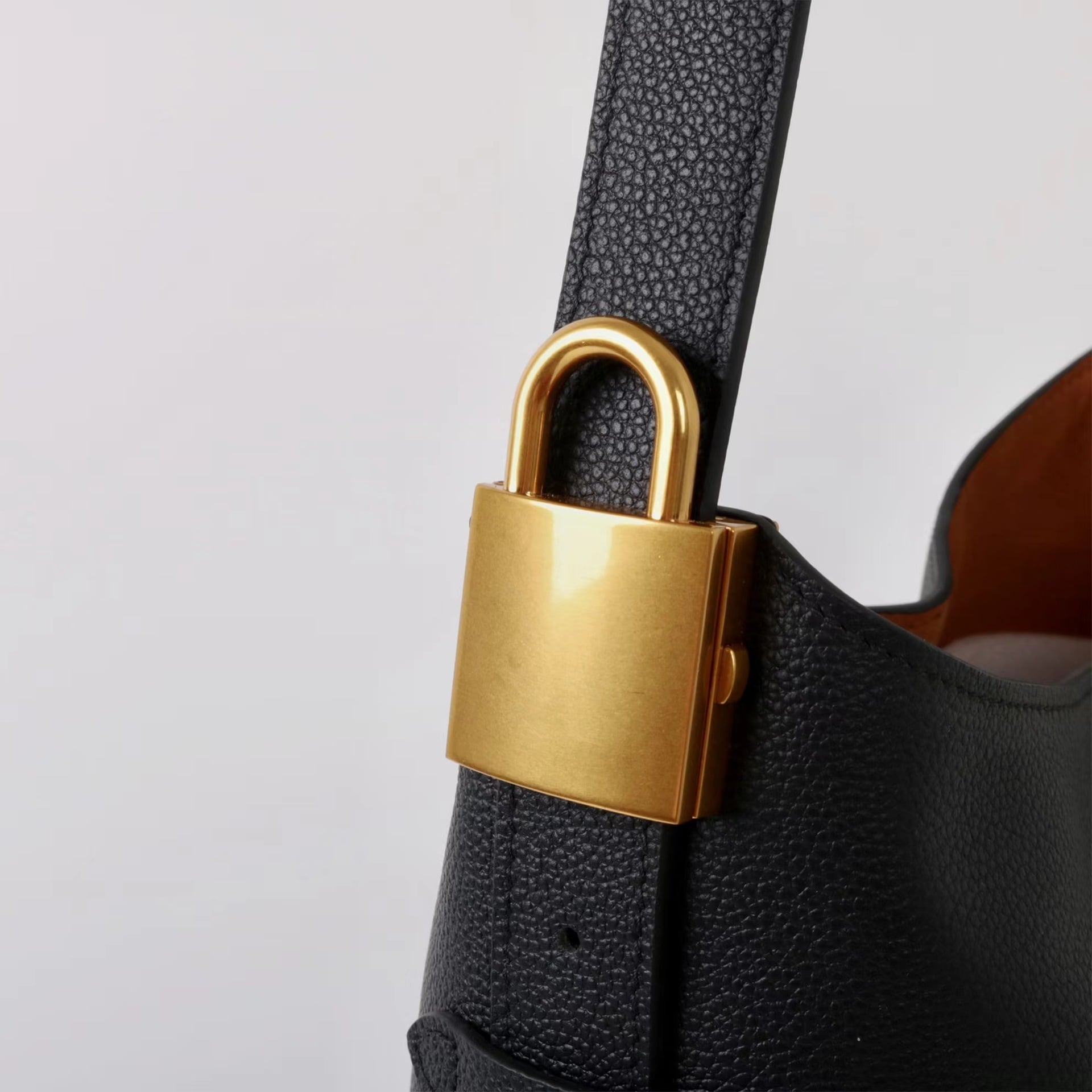 【予約販売】韓国デザイン 本革 レザーロックバケツバッグ ショルダーBAG