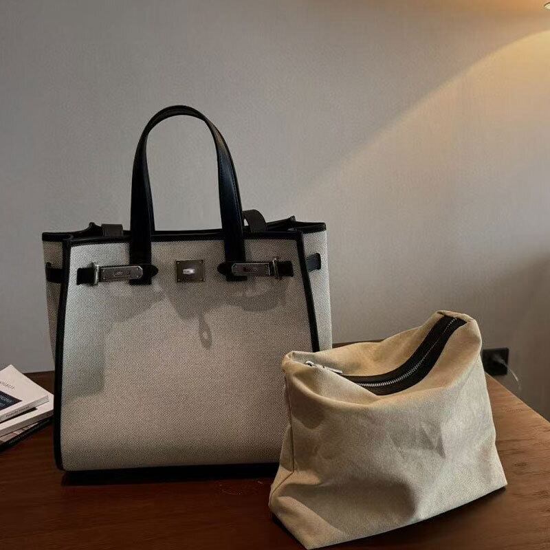 【予約販売】キャンバス×レザー ハンドバッグ オフィス ショルダーBAG ケリータイプ