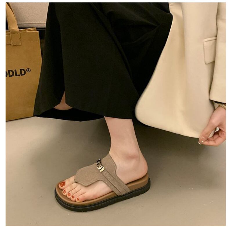 【予約販売】韓国デザイン T字ベルトバックル ウエッジサンダル 厚底ミュール