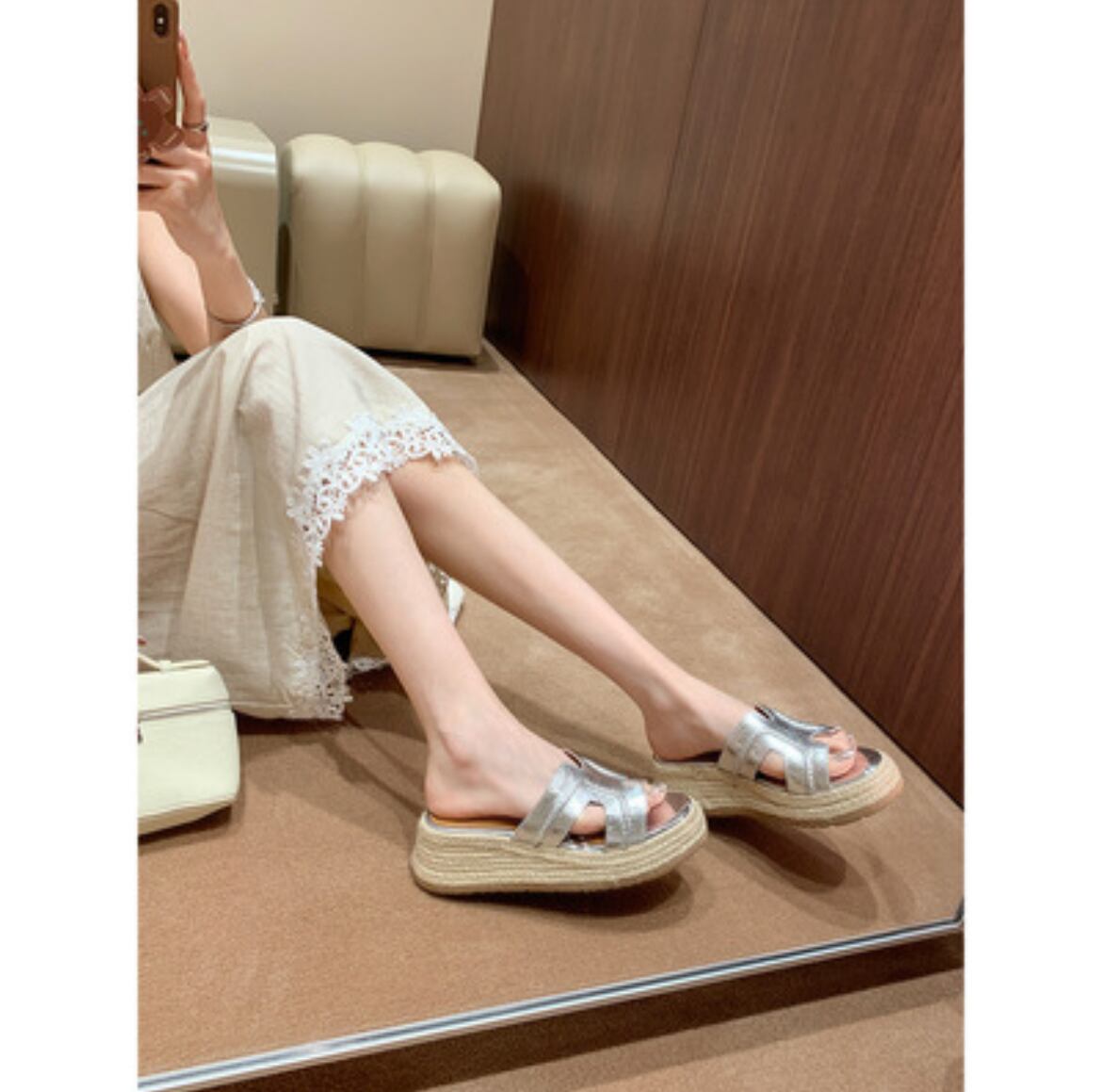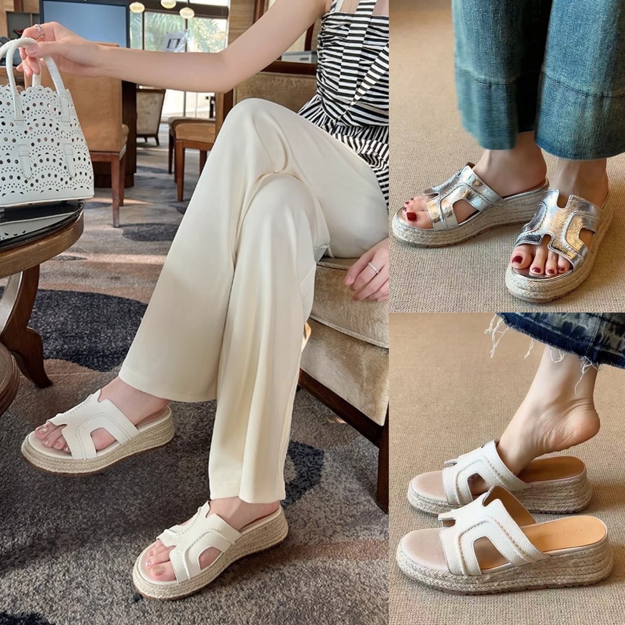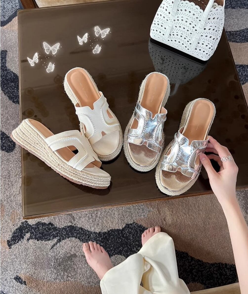 【予約販売】韓国デザイン レザーウエッジサンダル ロゴ ビーチサンダル