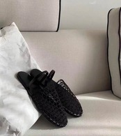 【予約販売】韓国デザイン 羊皮 レザーフラットサンダル メッシュ 編み込み