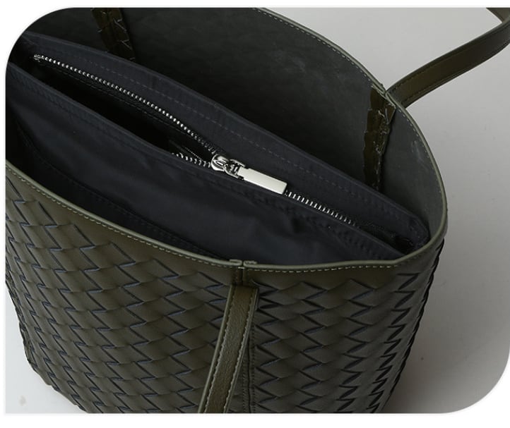 【予約販売】韓国デザイン 本革 レザーバケツバッグ トート 牛革 編み込みBAG