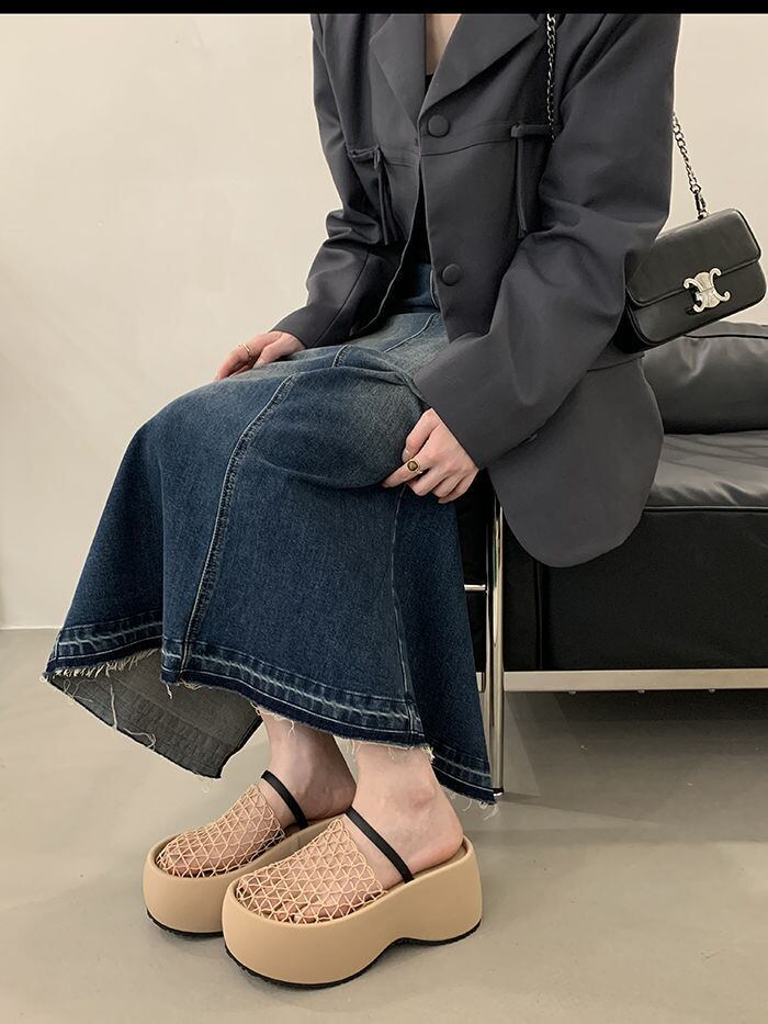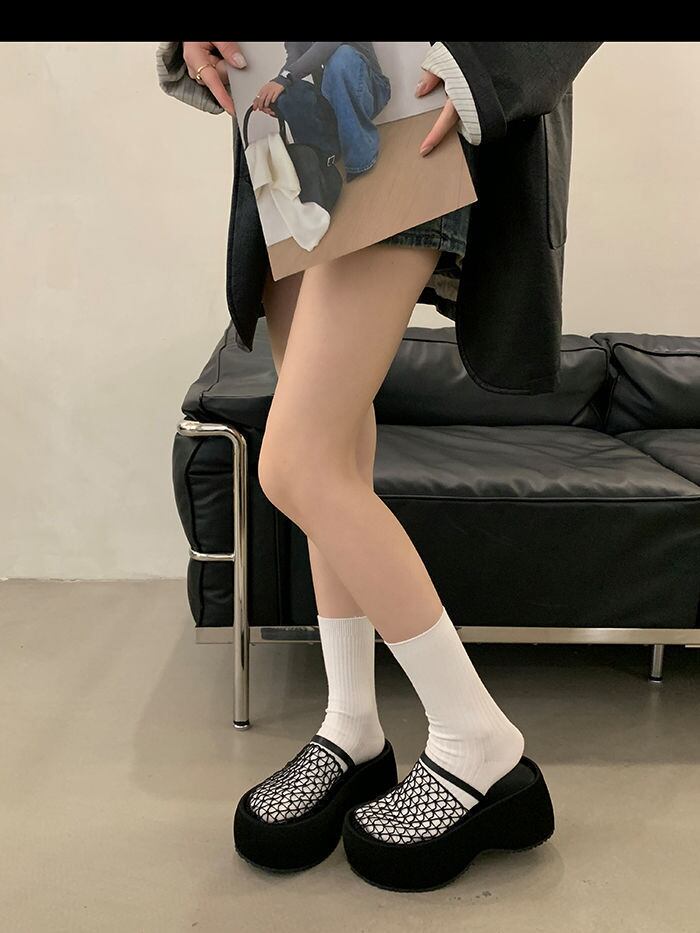 【予約販売】韓国デザイン 軽量 厚底 メッシュ ビーチサンダル サボ ヒール