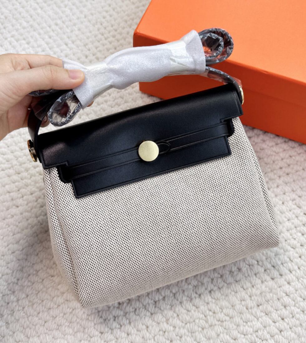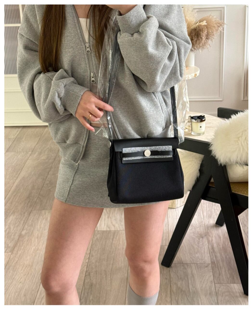 【予約販売】韓国デザイン レザー×キャンバス ショルダーバッグ 本革 BAG