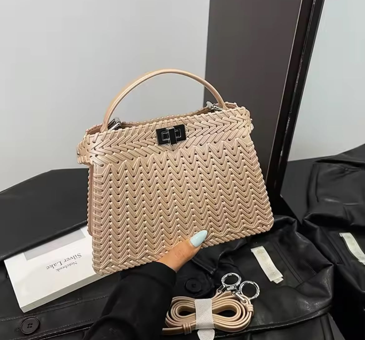 【予約販売】韓国デザイン 編み込みハンドバッグ カラーミニショルダーBAG