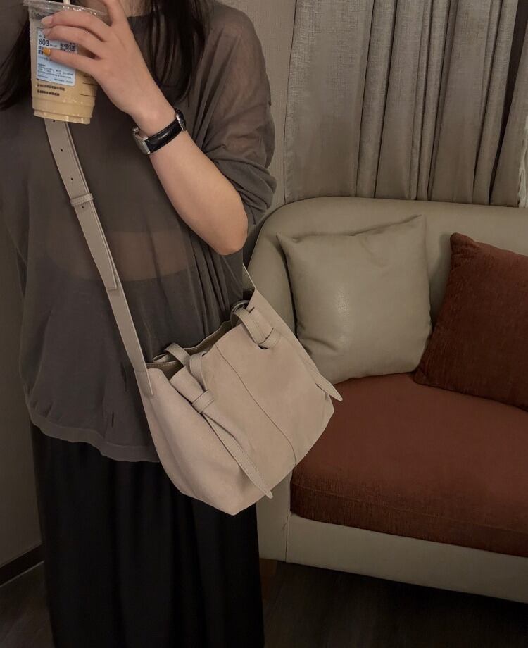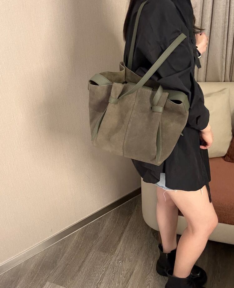 【予約販売】韓国デザイン 本革 レザートートバッグ スエード ショルダーBAG