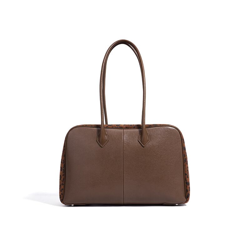 【予約販売】韓国 本革 レザーレオパードボストンバッグ 大容量ボーリングBAG
