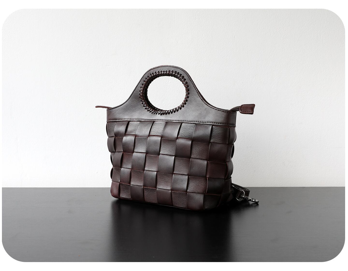 【予約販売】韓国 本革 レザー編み込みハンドバッグ バスケットBAG 手織り