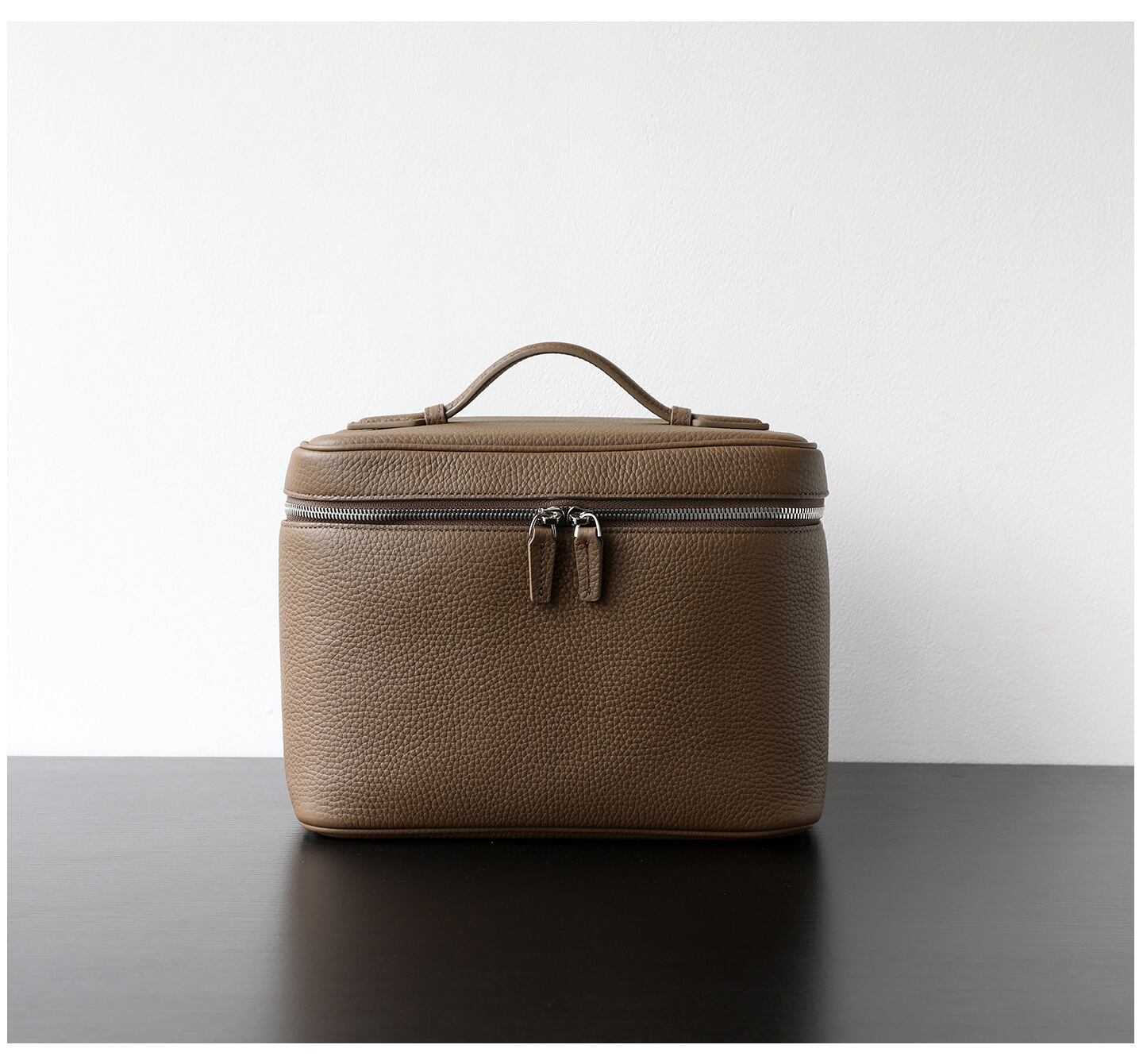 【予約販売】韓国 本革 レザーバニティバッグ メイクポーチ BAG ミラー付 化粧