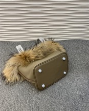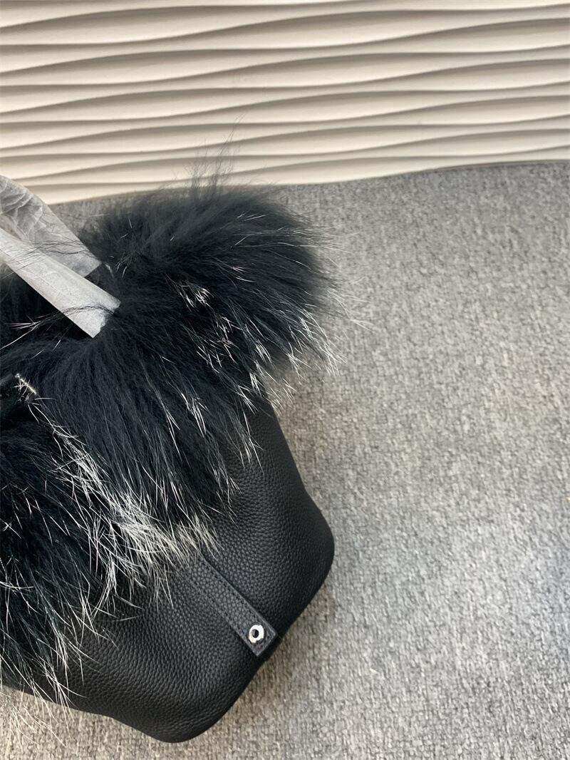 【予約販売】本革 レザーキューブバッグ ハンドBAG ラクーンファー 毛皮