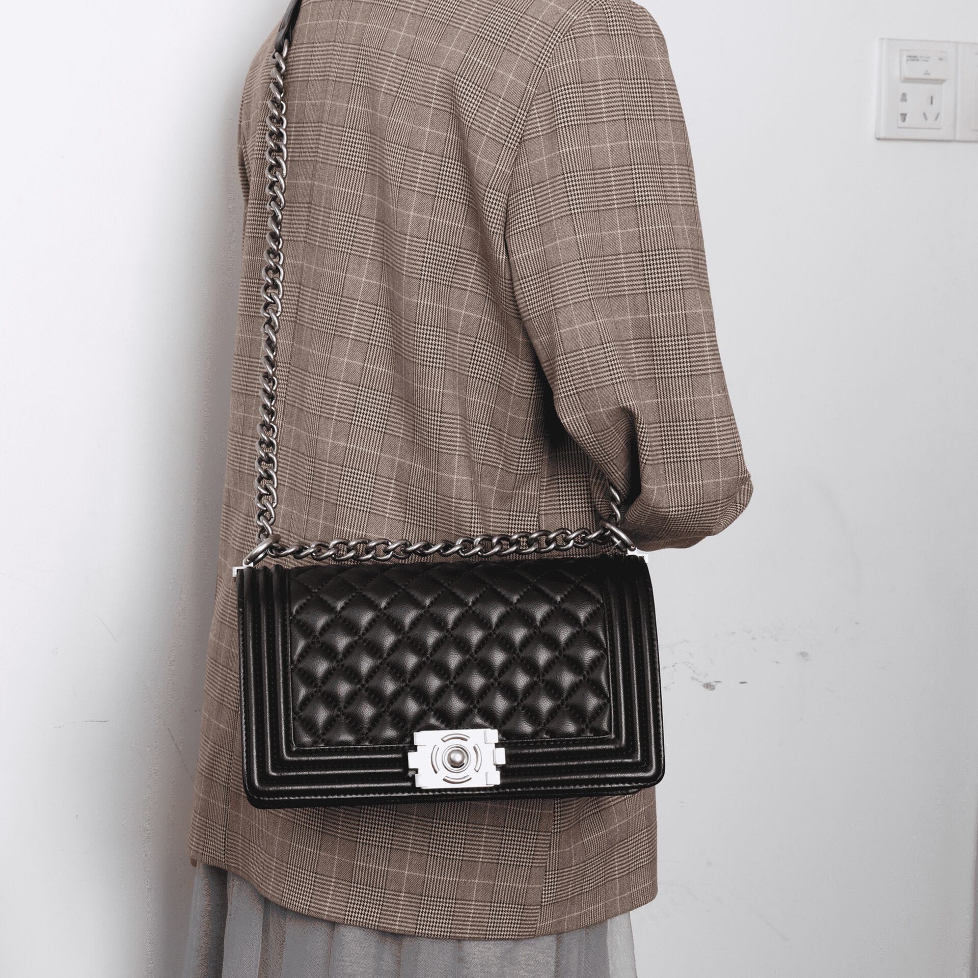 【予約販売】Lサイズ 韓国デザイン 本革 キルティング チェーンバッグ BAG