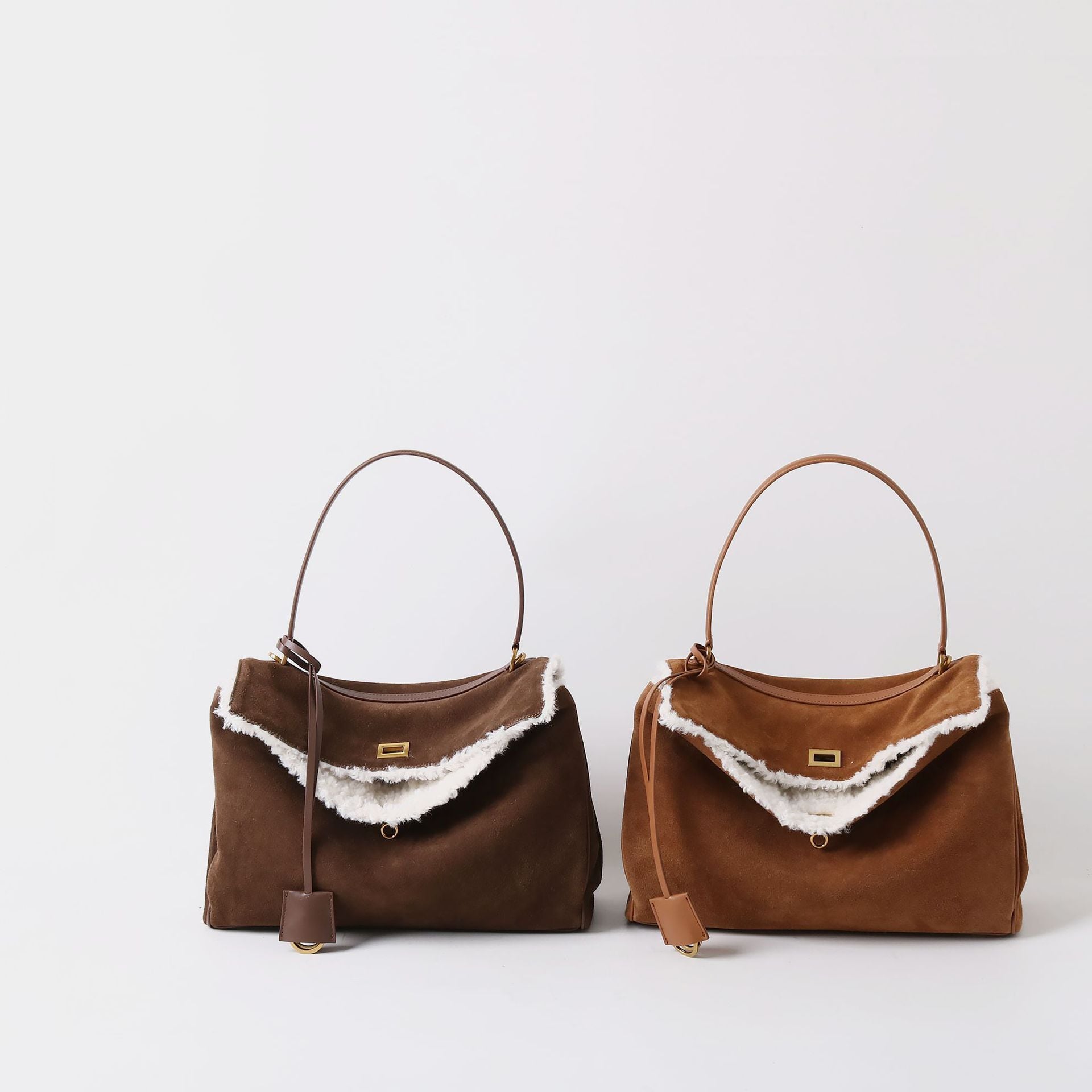 【予約販売】韓国デザイン レザーシープスキン もこもこバッグ ショルダーBAG