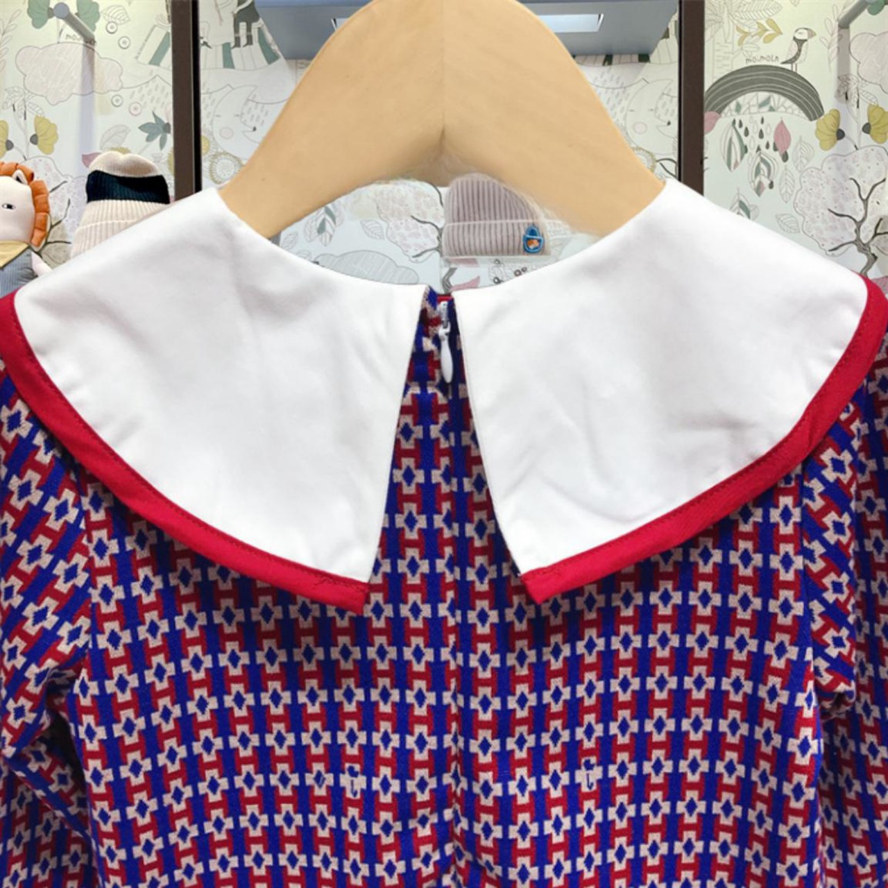 【予約販売】韓国子供服 デザイン襟 ビッグカラワンピース ジャガードDRESS