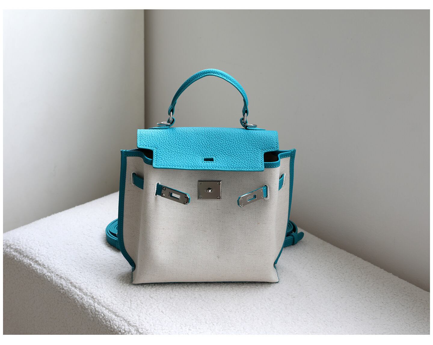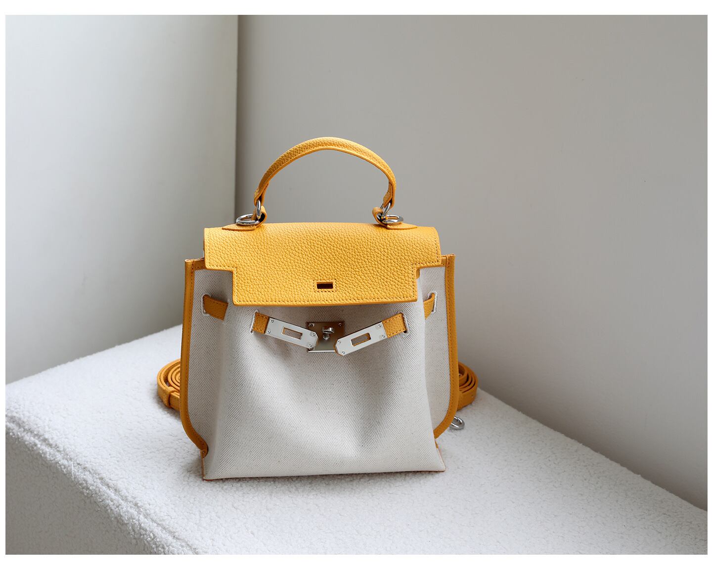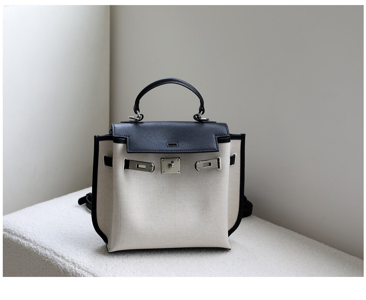 【予約販売】韓国デザイン レザー×キャンバス バックパック ハンドバッグ ケリータイプ