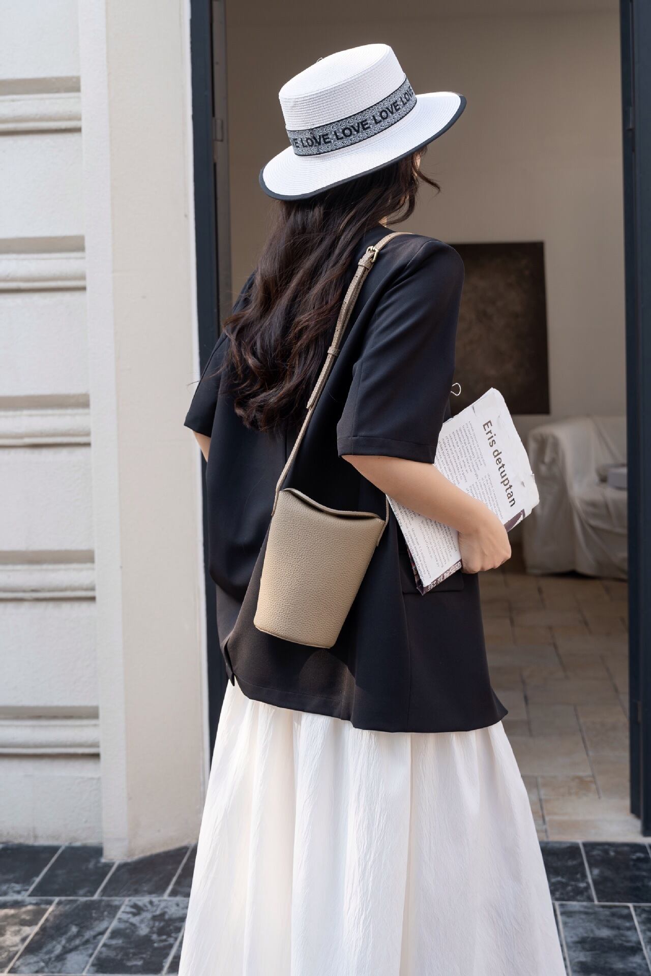 【予約販売】韓国デザイン 本革 レザーバケツバッグ ショルダーBAG 牛革