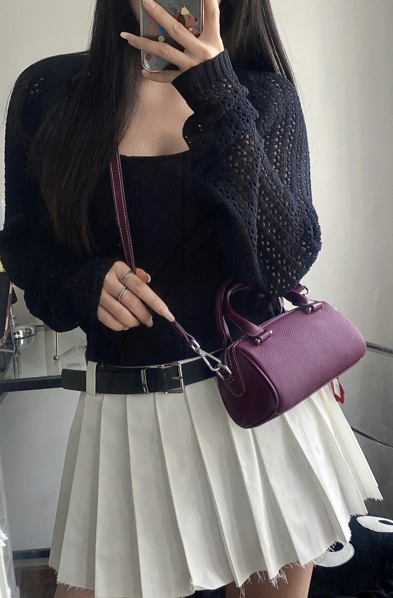 【予約販売】韓国デザイン 本革 レザーミニショルダーバッグ 筒形 ボストンBAG