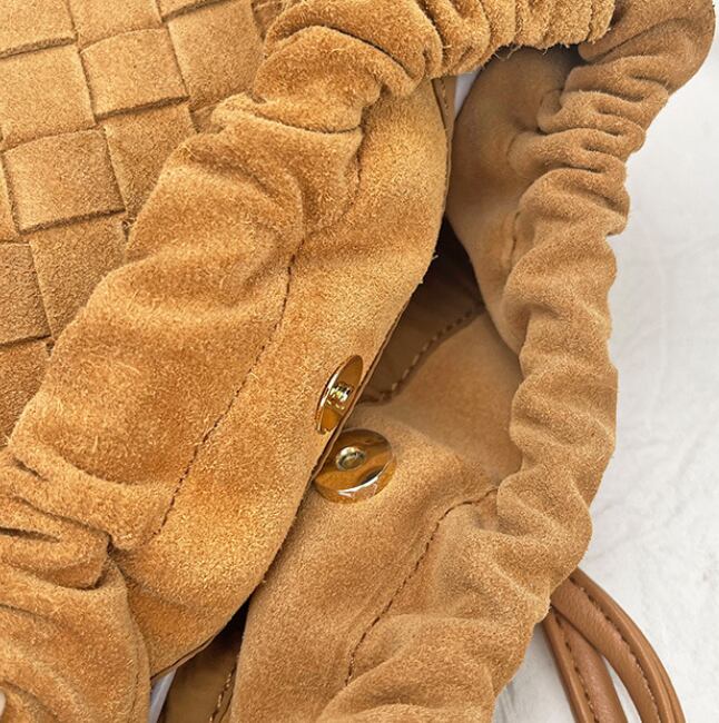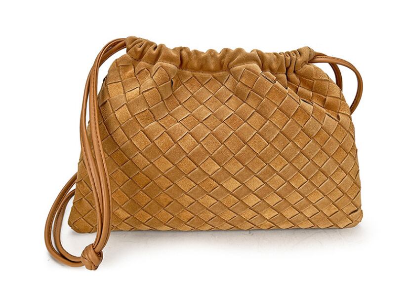 【予約販売】韓国デザイン スエードレザー編み込み巾着バッグ ショルダーBAG