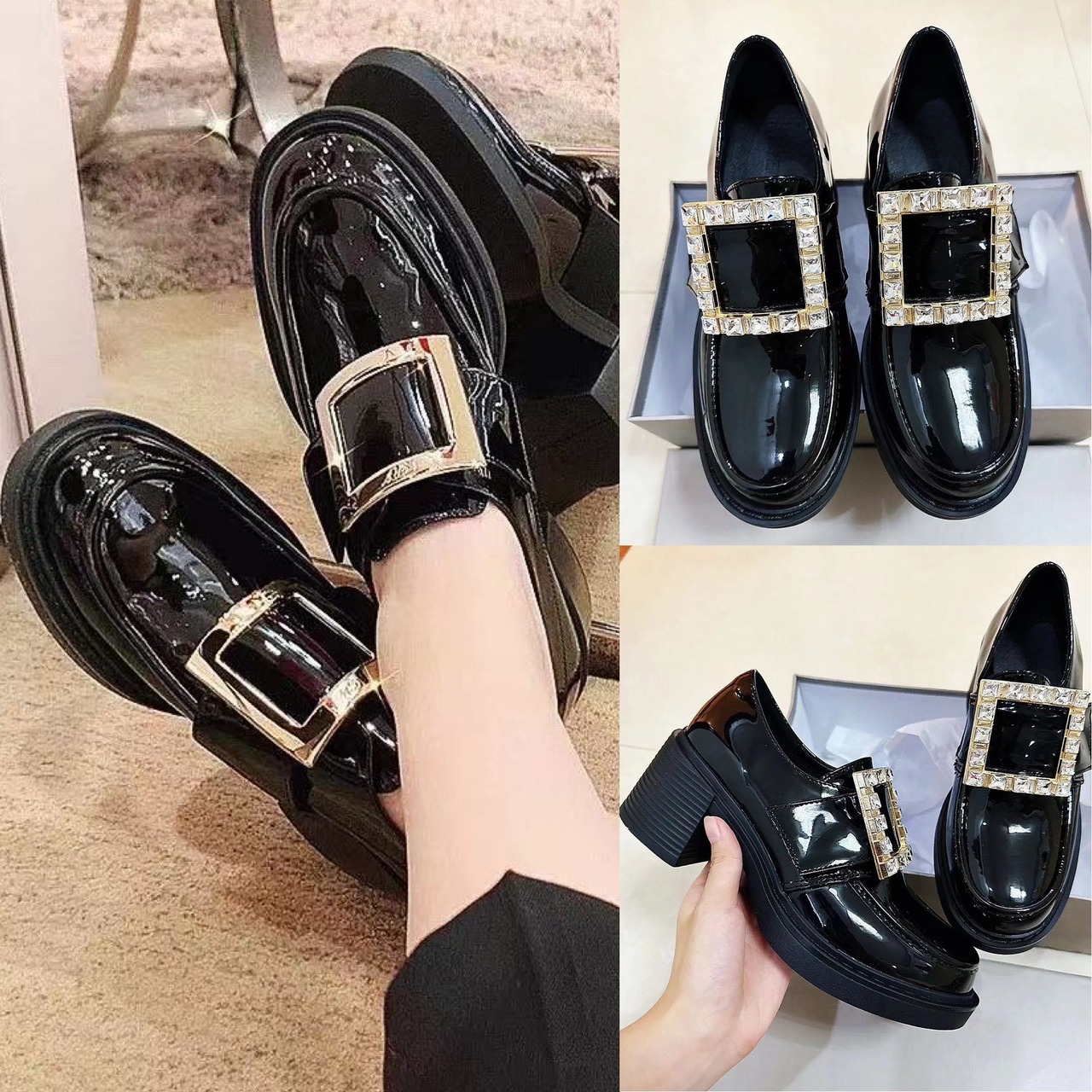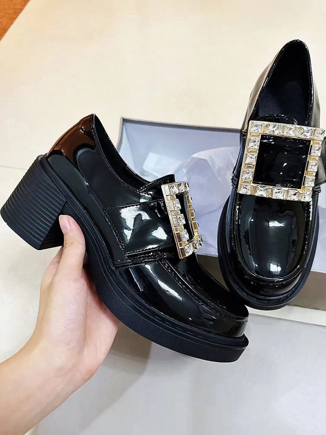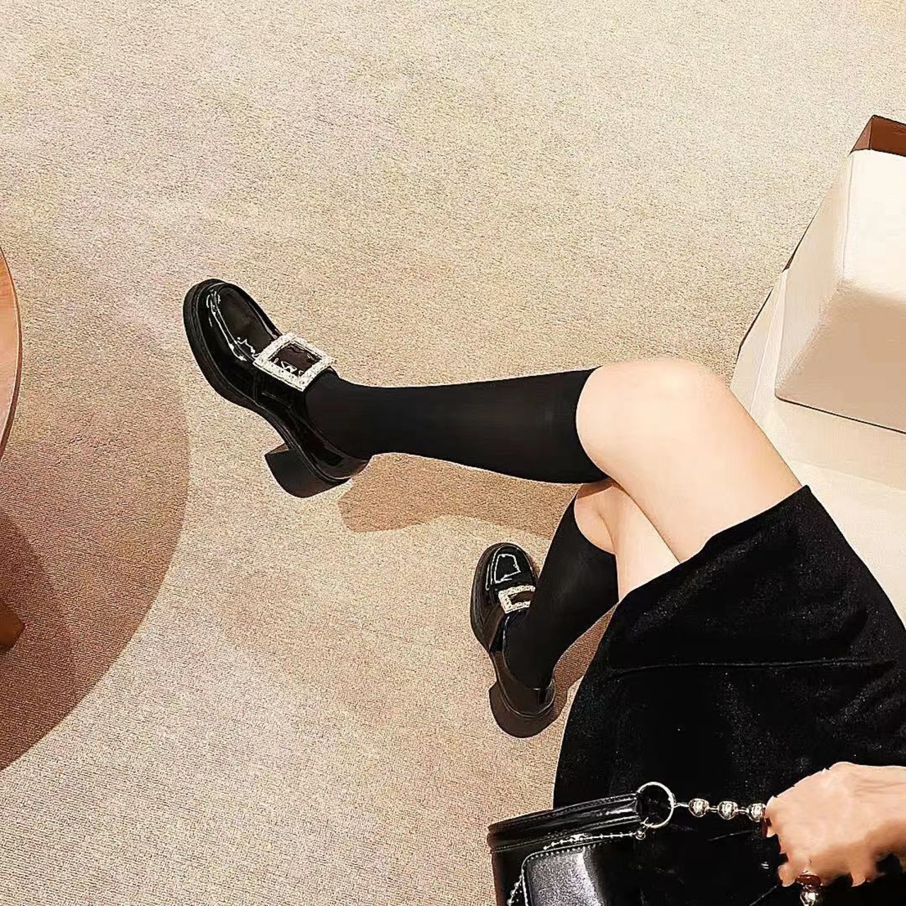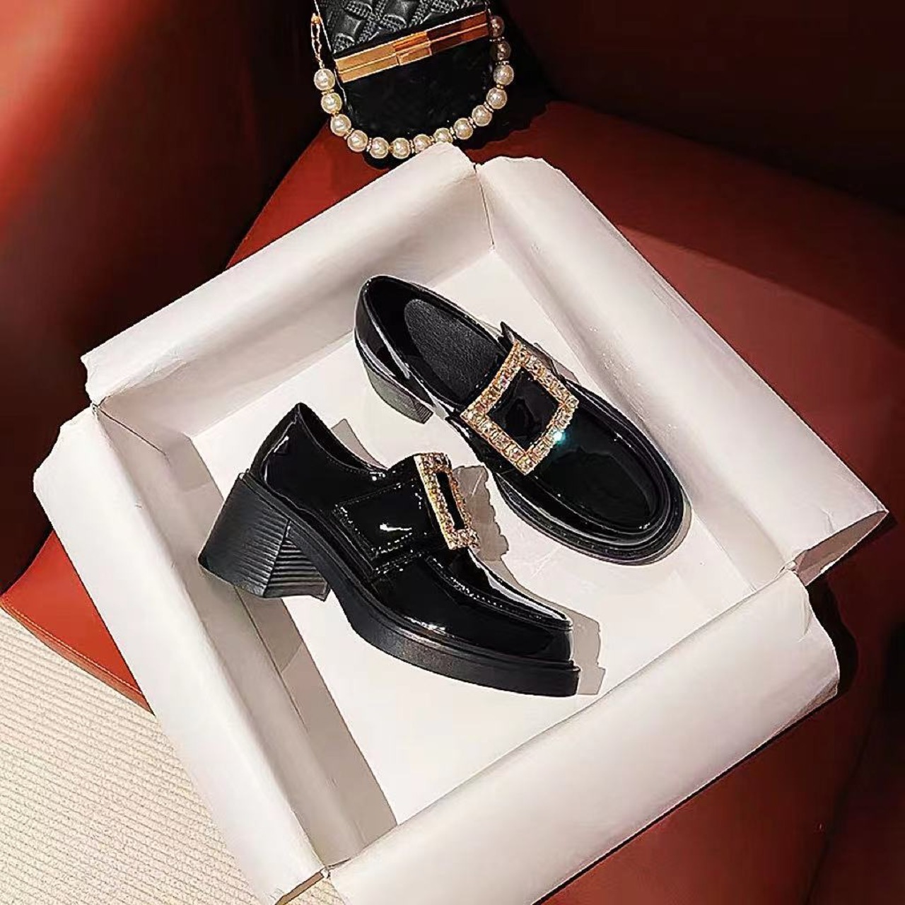 【予約販売】韓国デザイン スクエアバックル ビジュー ヒールローファー