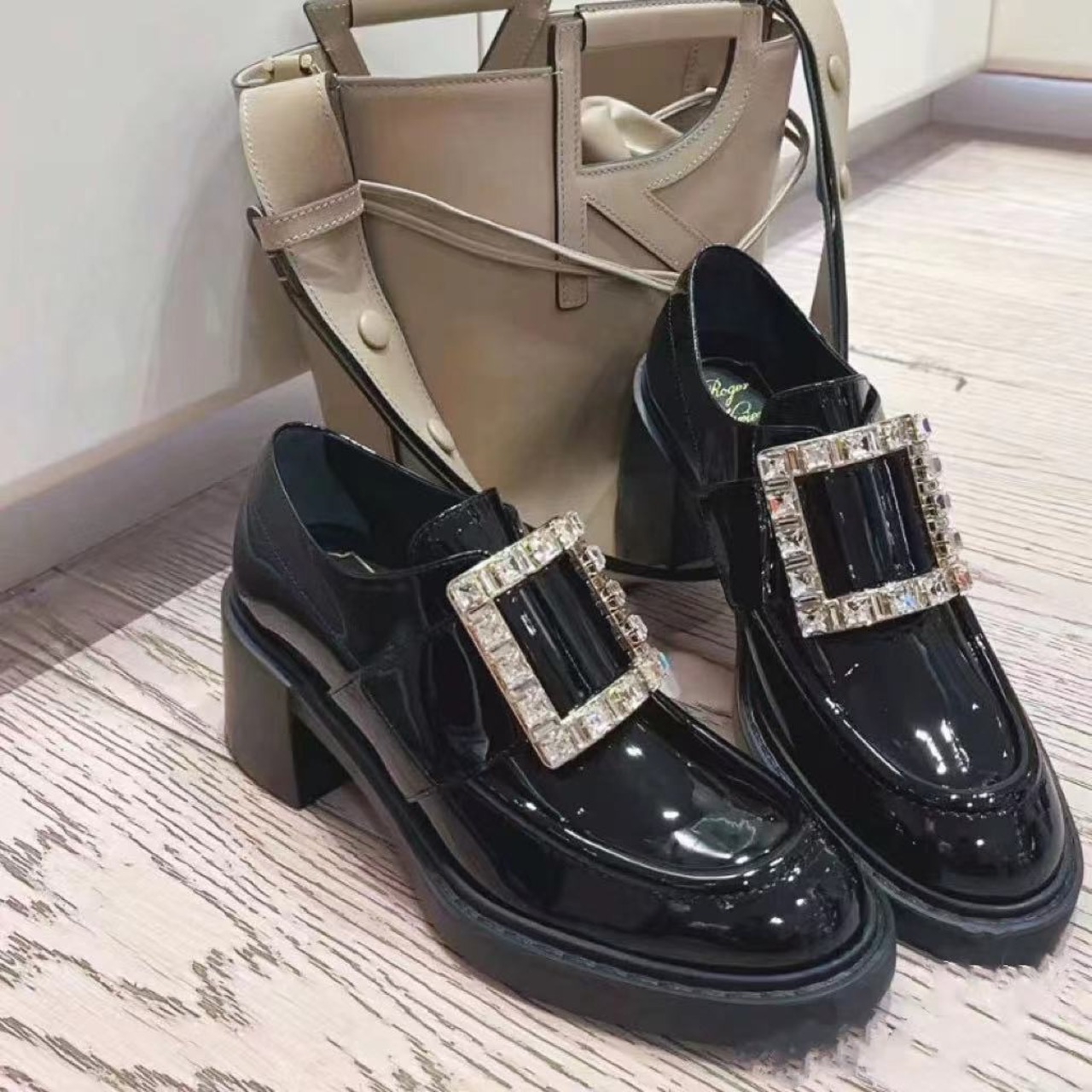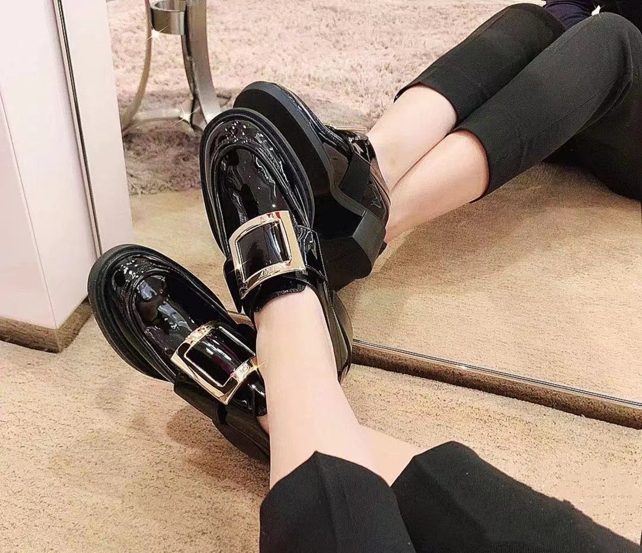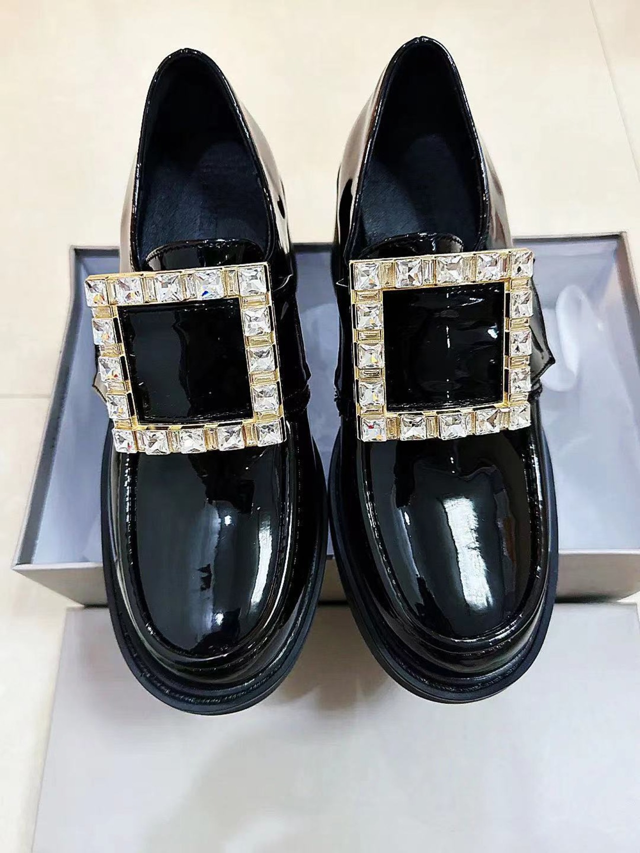 【予約販売】韓国デザイン スクエアバックル ビジュー ヒールローファー