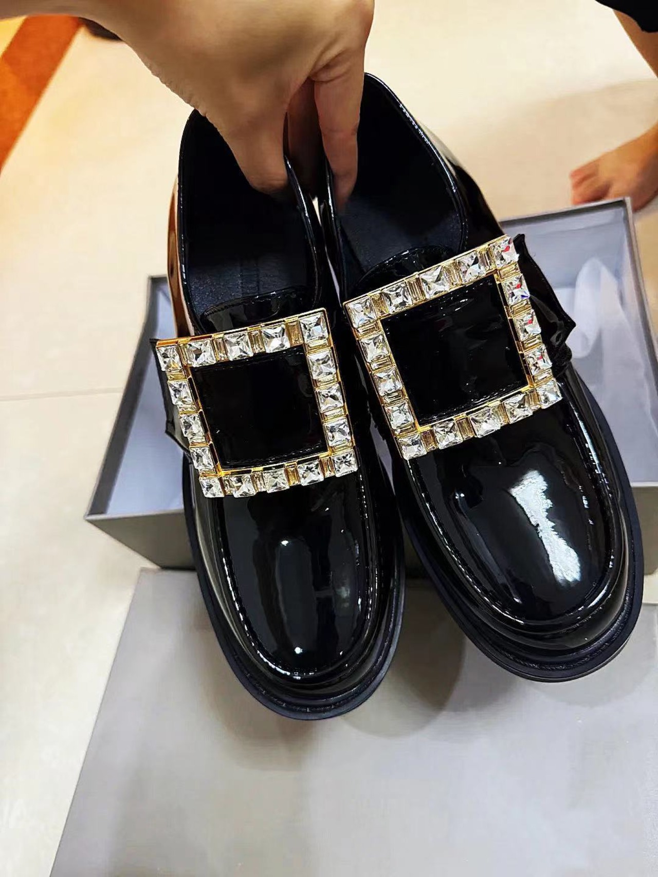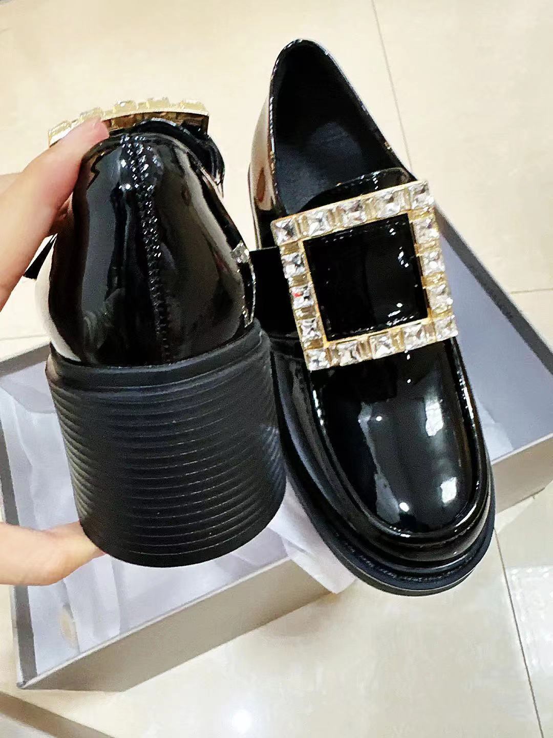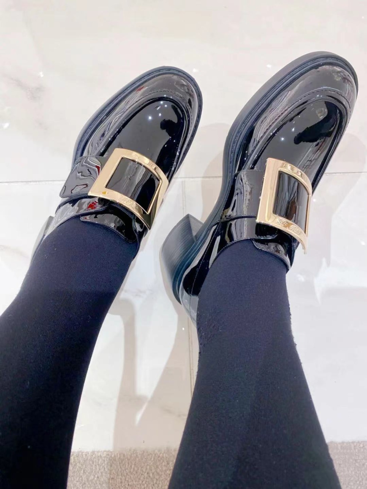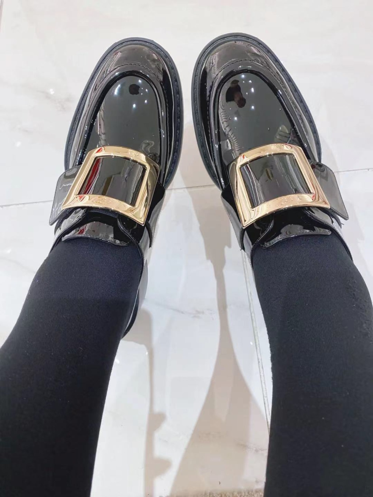 【予約販売】韓国デザイン スクエアバックル ビジュー ヒールローファー