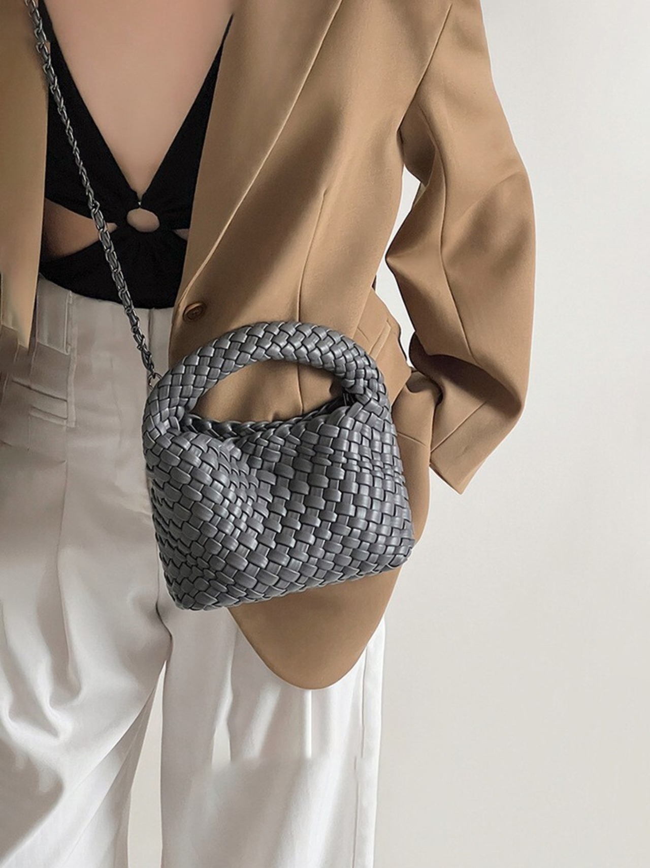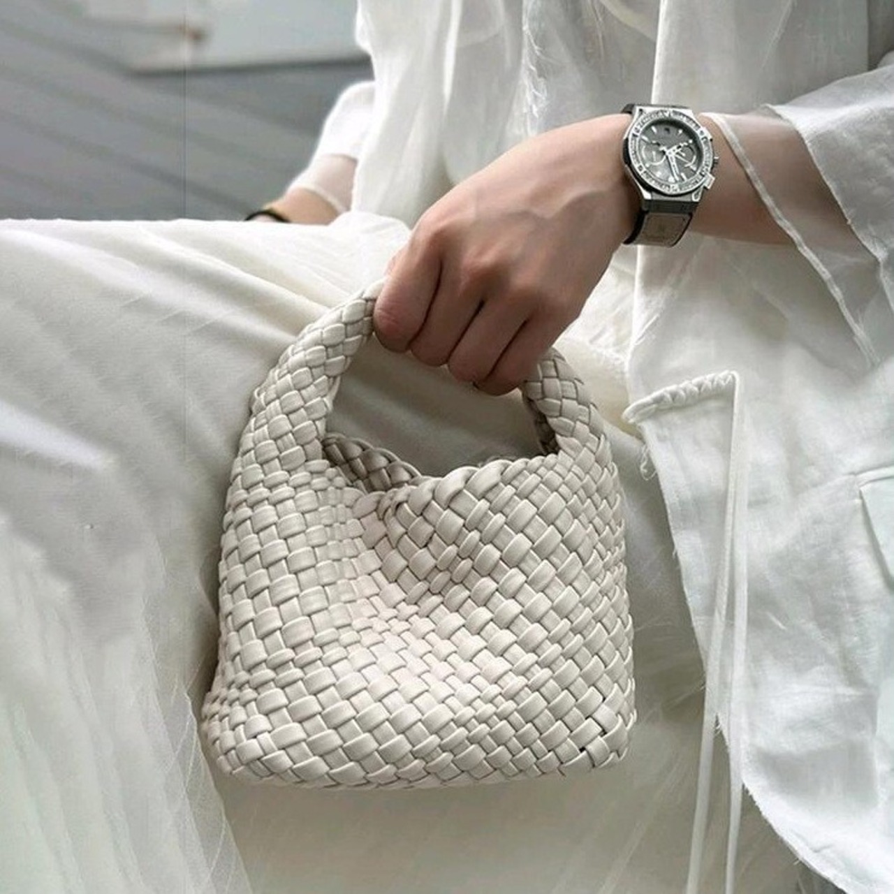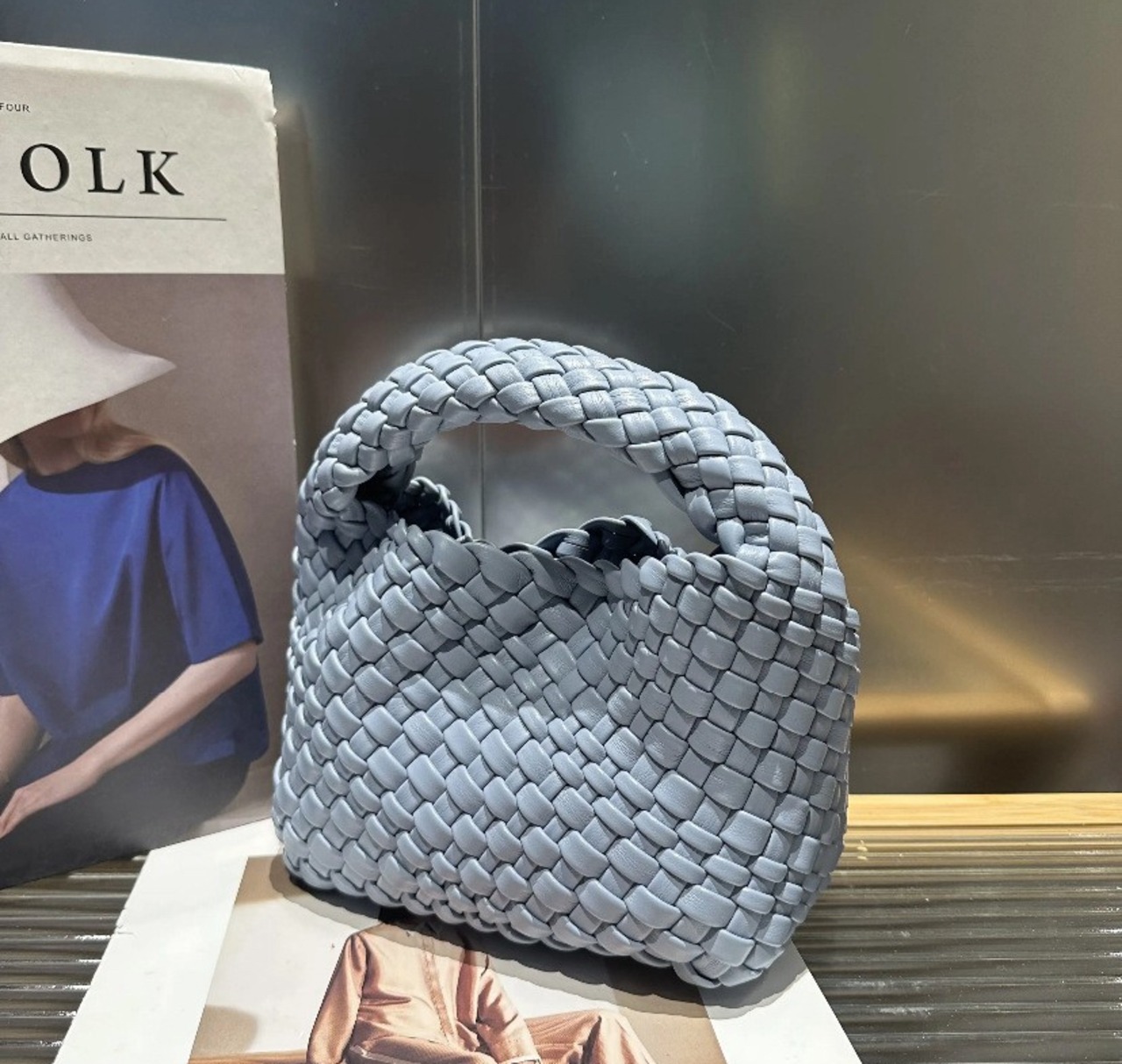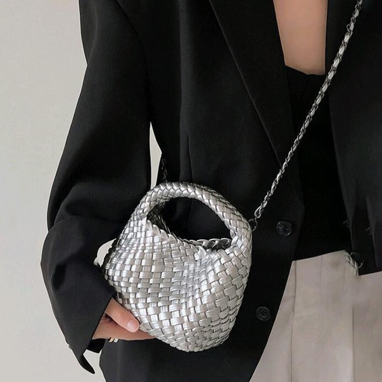 【予約販売】韓国デザイン コロンと可愛い 編み込みハンドバッグ ショルダー