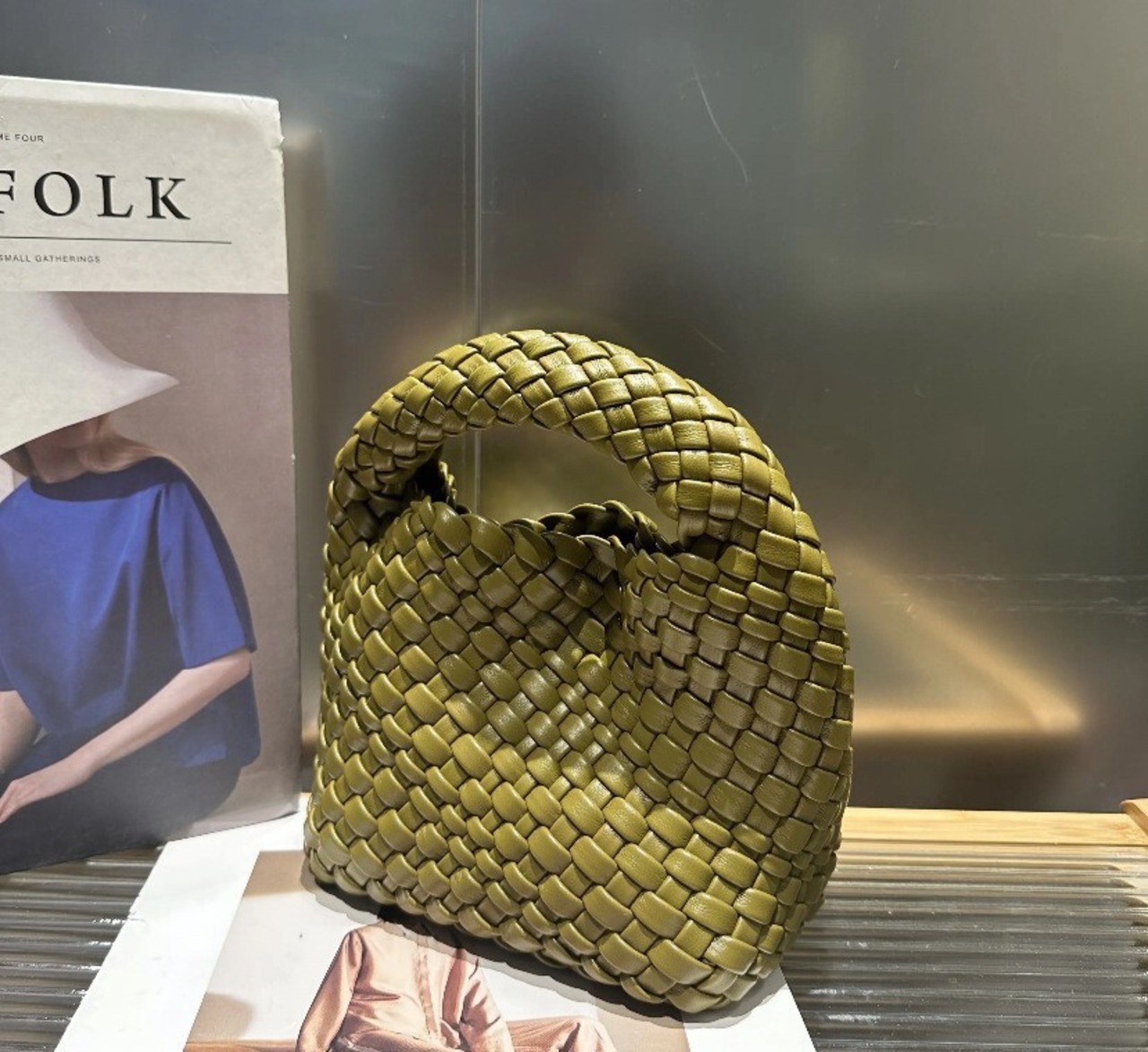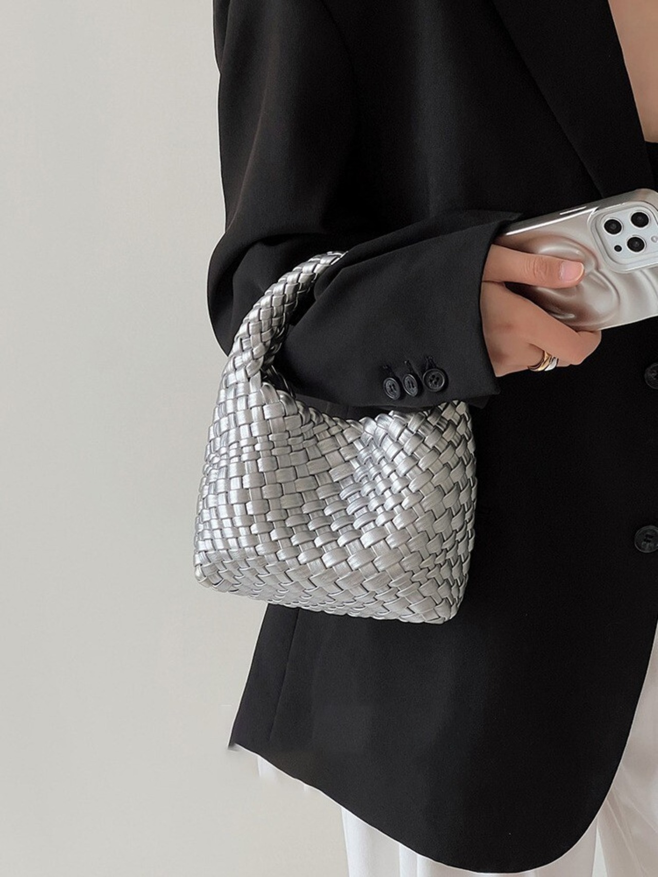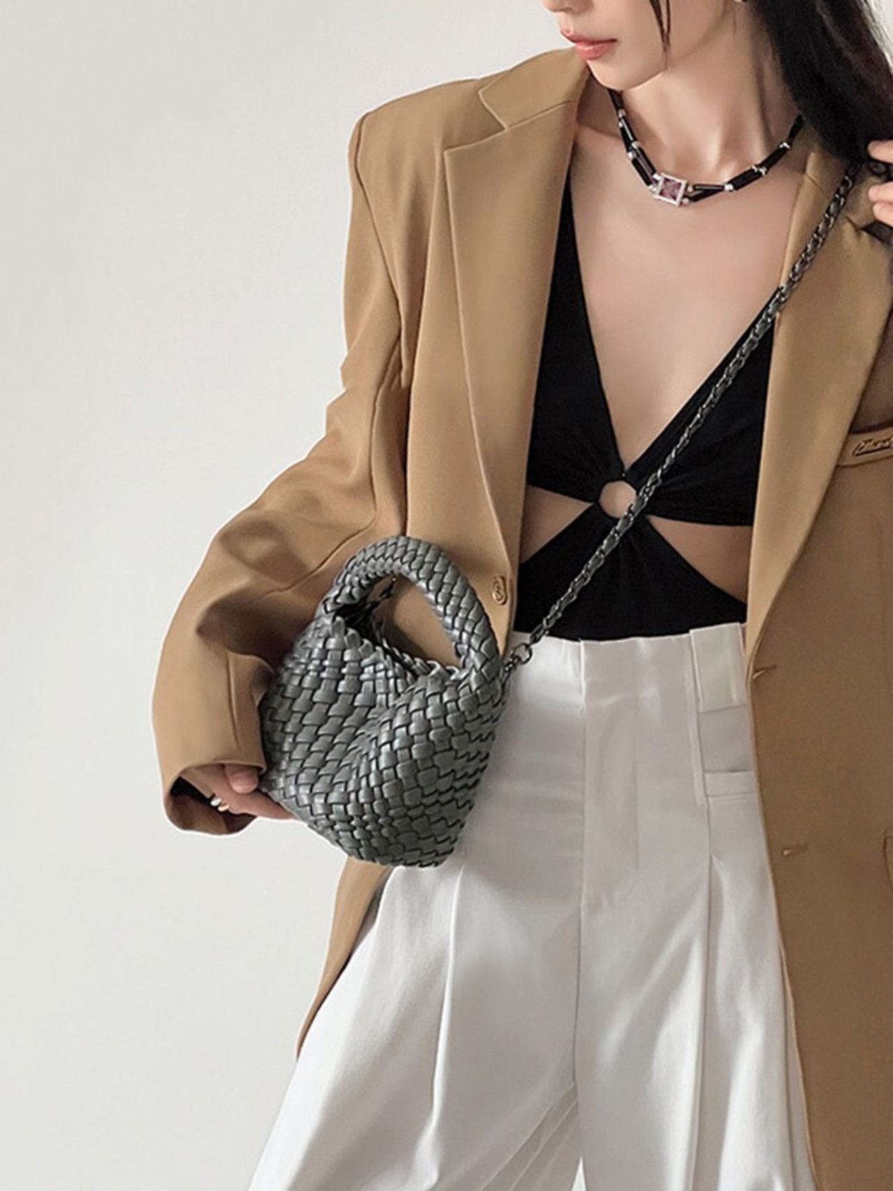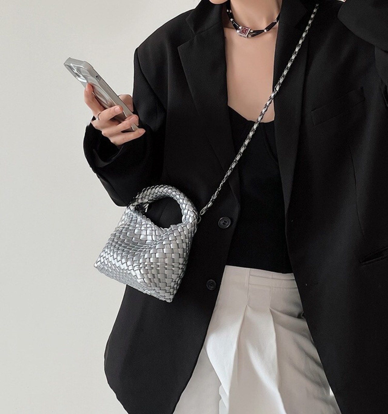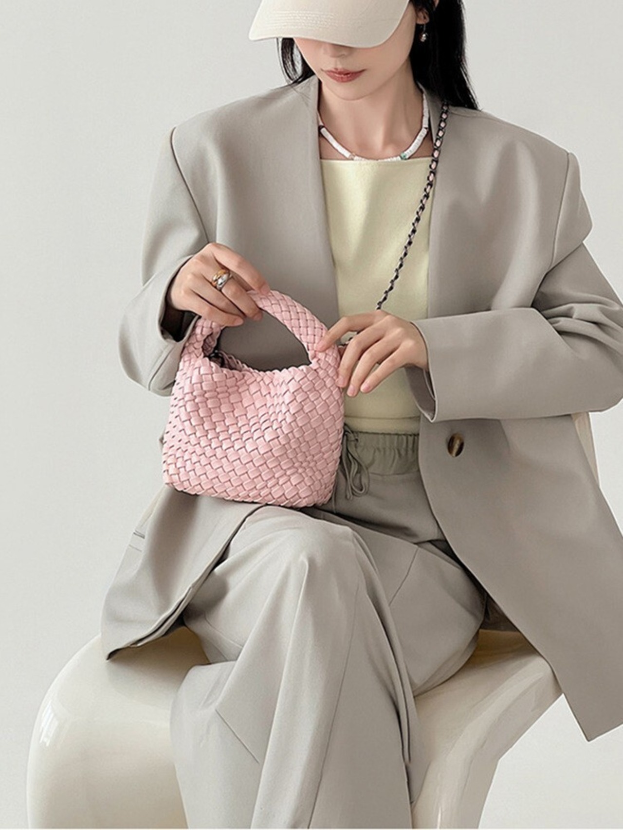 【予約販売】韓国デザイン コロンと可愛い 編み込みハンドバッグ ショルダー