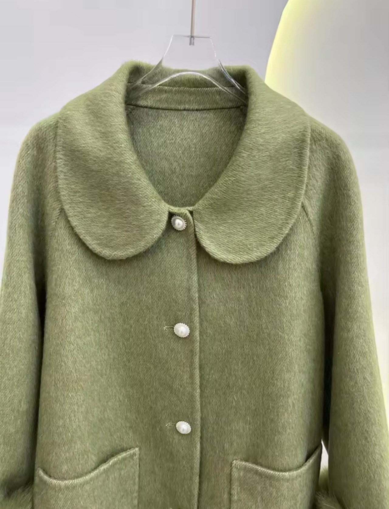 【予約販売】韓国デザイン フォックスファー 丸襟ウールコート 毛皮 パール