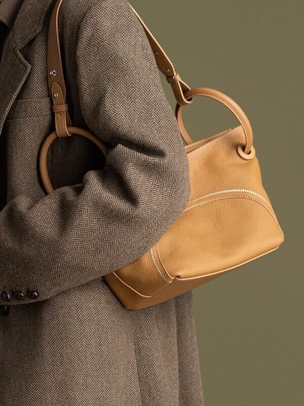 【予約販売】韓国デザイン 牛革 ショルダー ハンドバッグ トゴ素材 巾着BAG