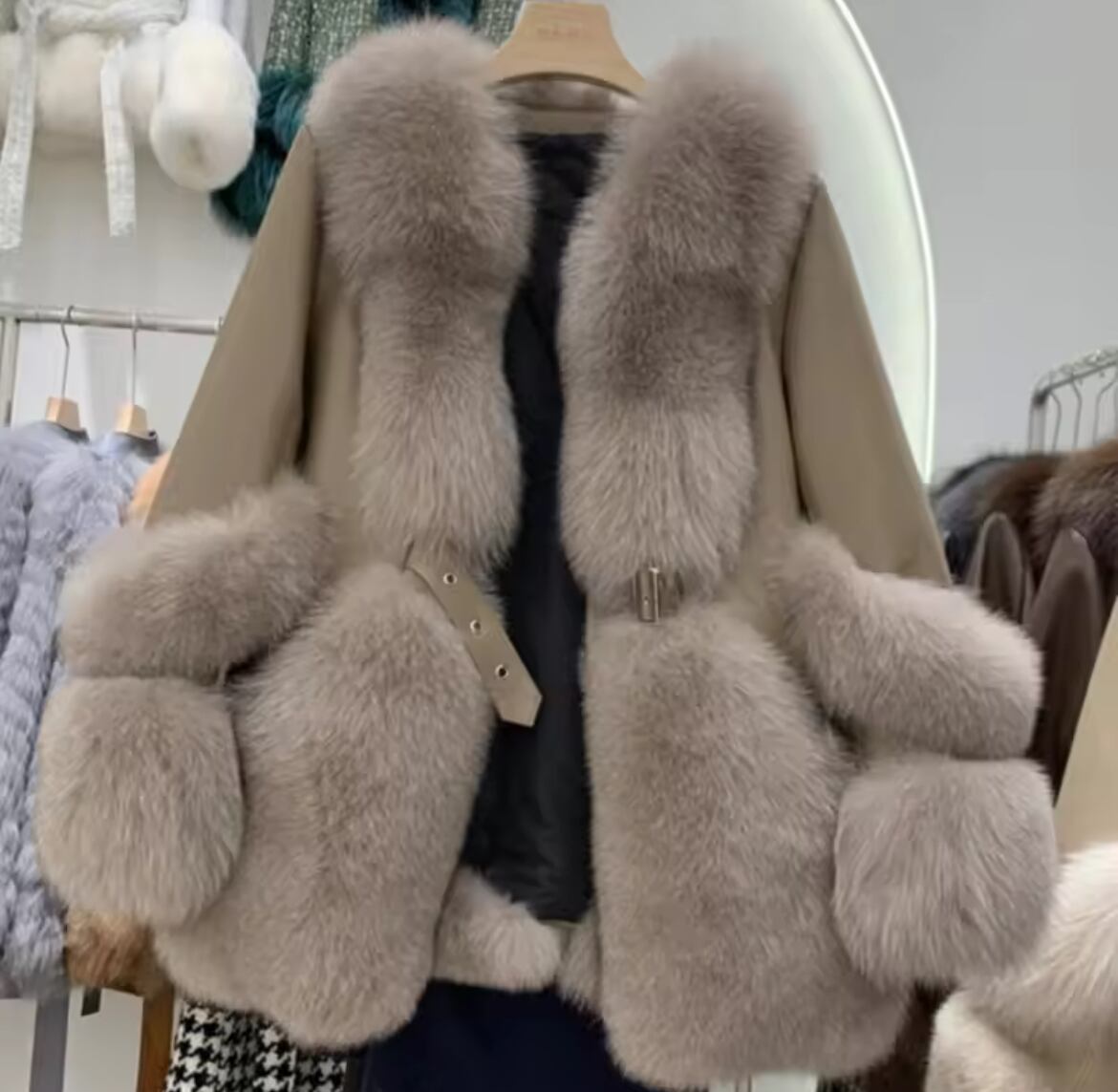 【予約販売】韓国デザイン リアルファー 毛皮 コートファージャケット レザー