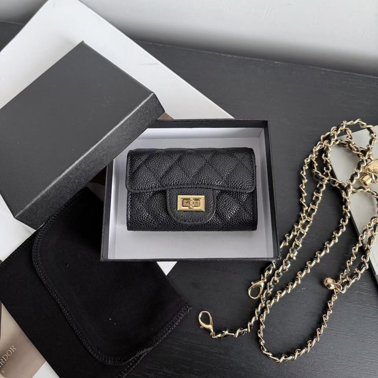 【予約販売】韓国デザイン 本革 レザーキルティングチェーンミニウォレットBAG