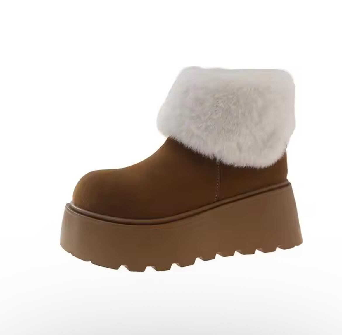 【予約販売】韓国デザイン ムートン風厚底ブーツ ウエッジミディブーツ