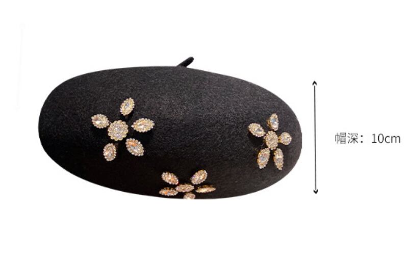 【予約販売】韓国デザイン ウールビジューベレー帽 キラキラ キャスケット