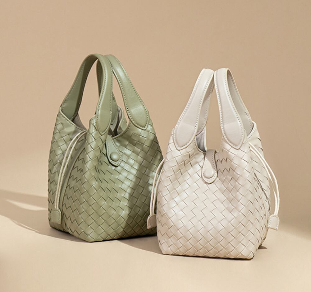 【予約販売】韓国ノーブランド エコレザーキューブバッグ 編み込みBAG バケツ