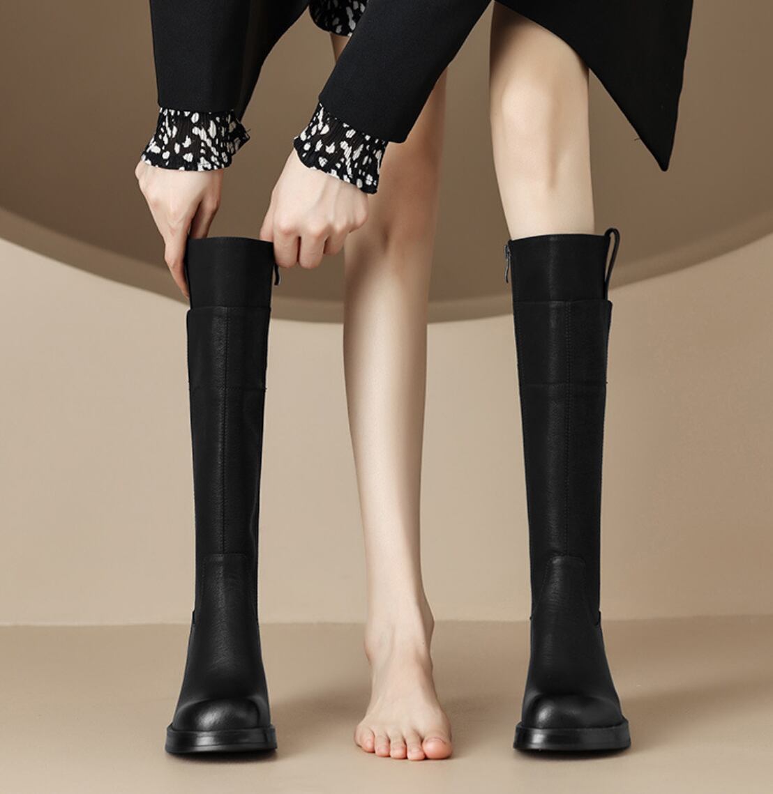 【予約販売】デザイン 美脚 レザーハイロングブーツ 厚底エンジニアブーツ