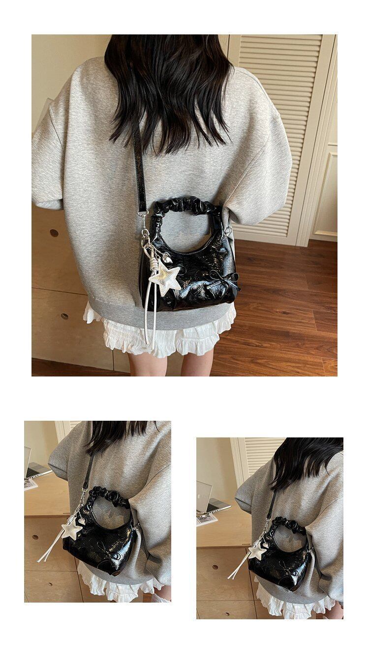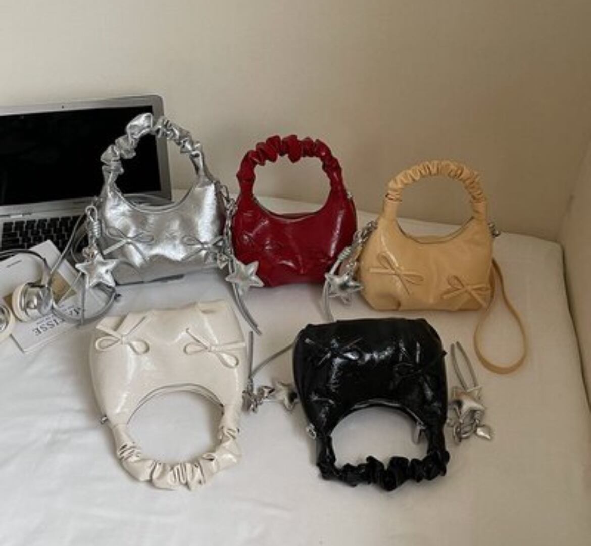 【予約販売】韓国デザイン PUレザー くしゅくしゅハンドバッグ ショルダーBAG リボン