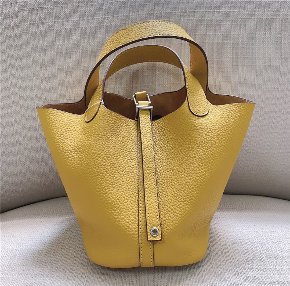 【予約販売】爆売れ 18㎝ 高品質 キューブバッグ 巾着ハンドバッグ 本革 レザーBAG